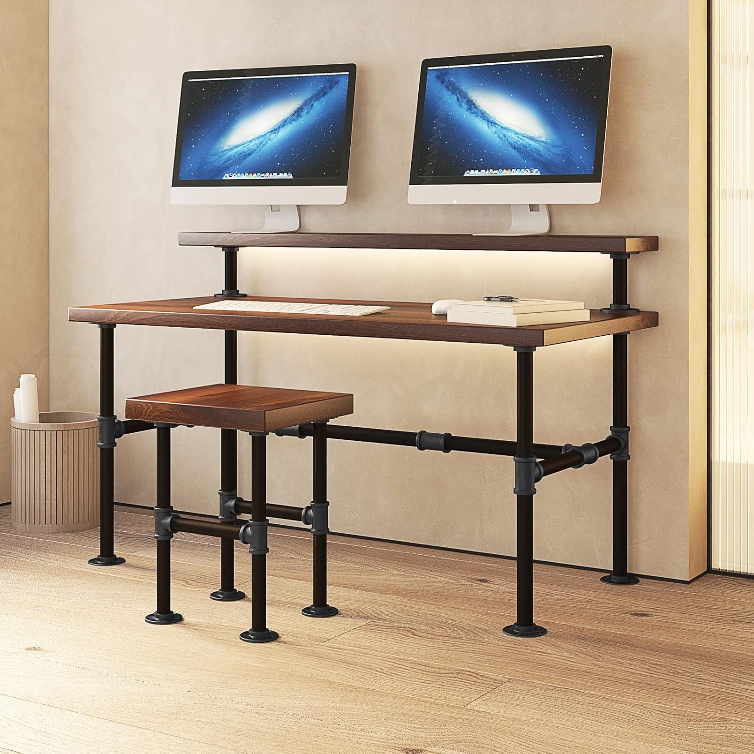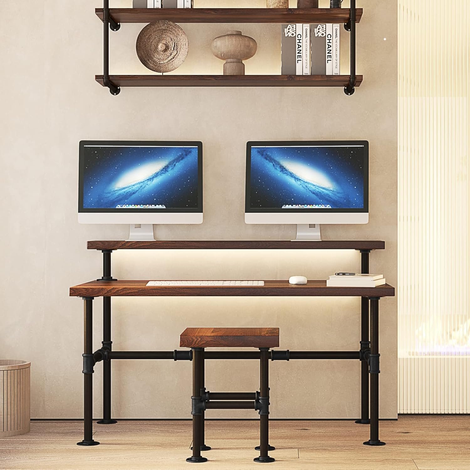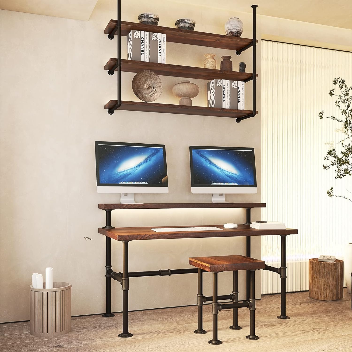 RAISES YOUR SCREEN – There are 6” pipe legs intended to support the monitor shelf, letting you enjoy an elevated screen for optimal viewing. The raised desktop helps ease up neck and back strain.
