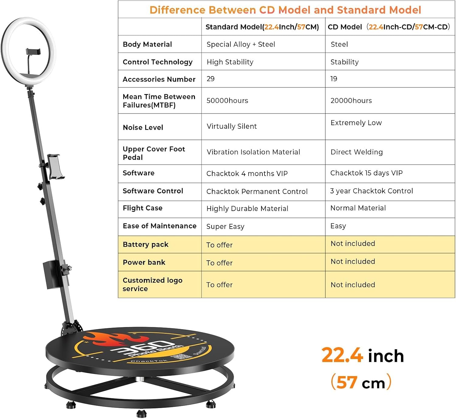 MWE 360 Photo Booth Machine for Parties with Extra Battery,Logo Customization,Software APP Remote Automatic 360 Spin Camera Booth (22”)
