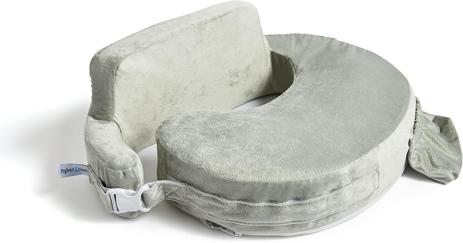 My Brest Friend Super Deluxe Nursing Pillow – Enhanced Comfort & Ergonomic Breastfeeding Pillow for Ultimate Support For Mom & Baby – Adjustable and with Handy Side Pocket, Platinum