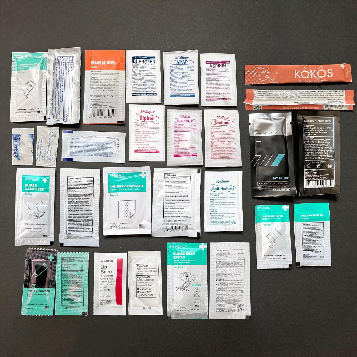 STANDARD KIT INCLUSIONS – Our first aid bag includes gloves, bandages, blister, mini burn aids, and hydration tools, and more. Can be your personal mini med kit or an addition to you hiking or camping essentials.
