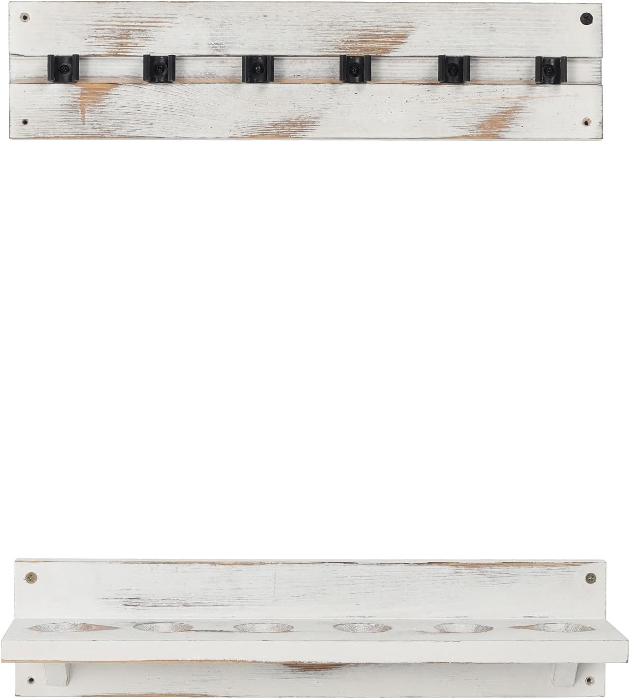 2 piece set solid wood traditional cue wall rack with vintage whitewashed finish **Cues not included**