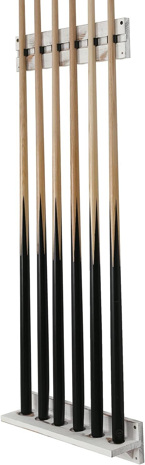Featuring the whitewashed wood construction, these vintage organizer racks will provide a stylish way to display up to 6 billiard pool cue sticks. These racks can be excellent decor in your home game room, garage, or in a bar or restaurant.