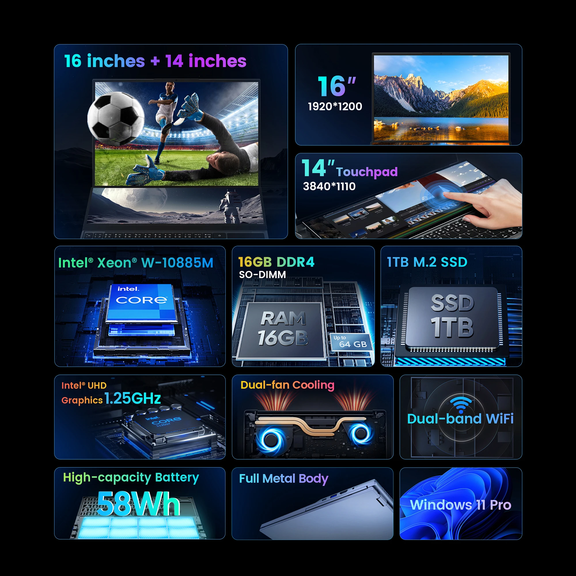 Utilizing a 16-inch + 14-inch ultra-thin bezel screen design,significantly enhancing screen real estate,enabling seamless multitasking at your whim.
