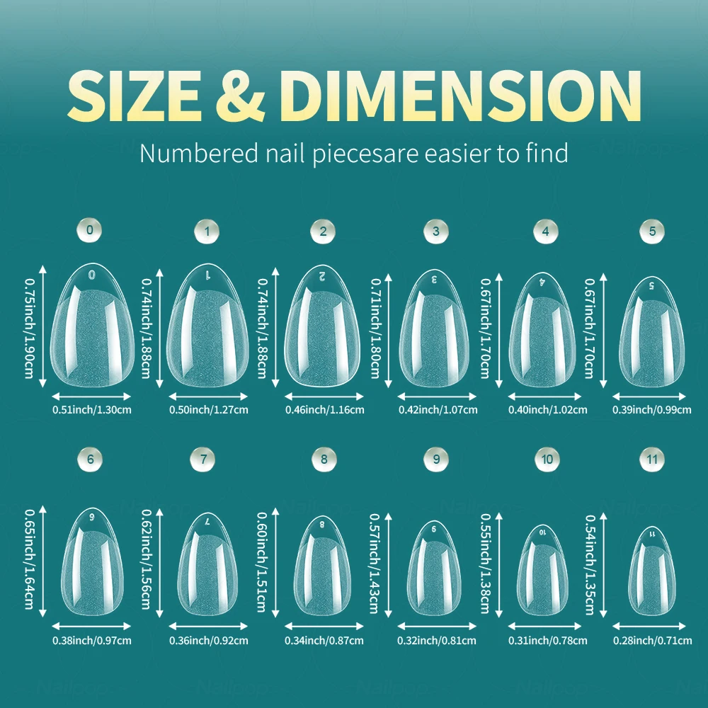 Nailpop 600pcs PRO Clear Semi-Matte Almond Coffin Full/Half Acrylic Square False Nail Tips for Extension Tip Manicure tool