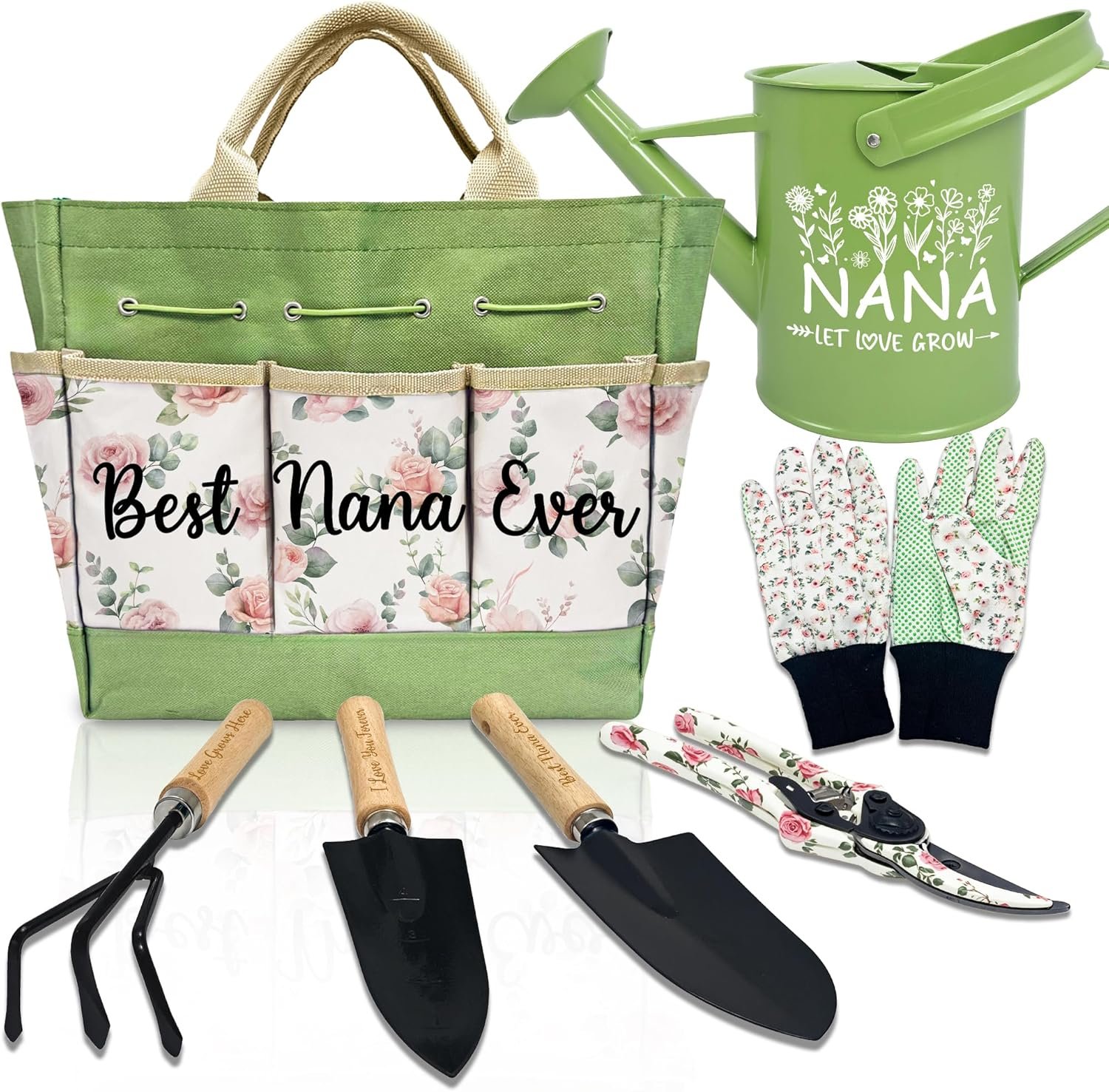 Nana Gifts, Mothers Day Garden Kit Nana Gifts from Grandkids Floral Gardening Tools and Durable Garden Tools Organizer Tote, Ideal Gardening Set for Women on Birthday Plant Lover Present