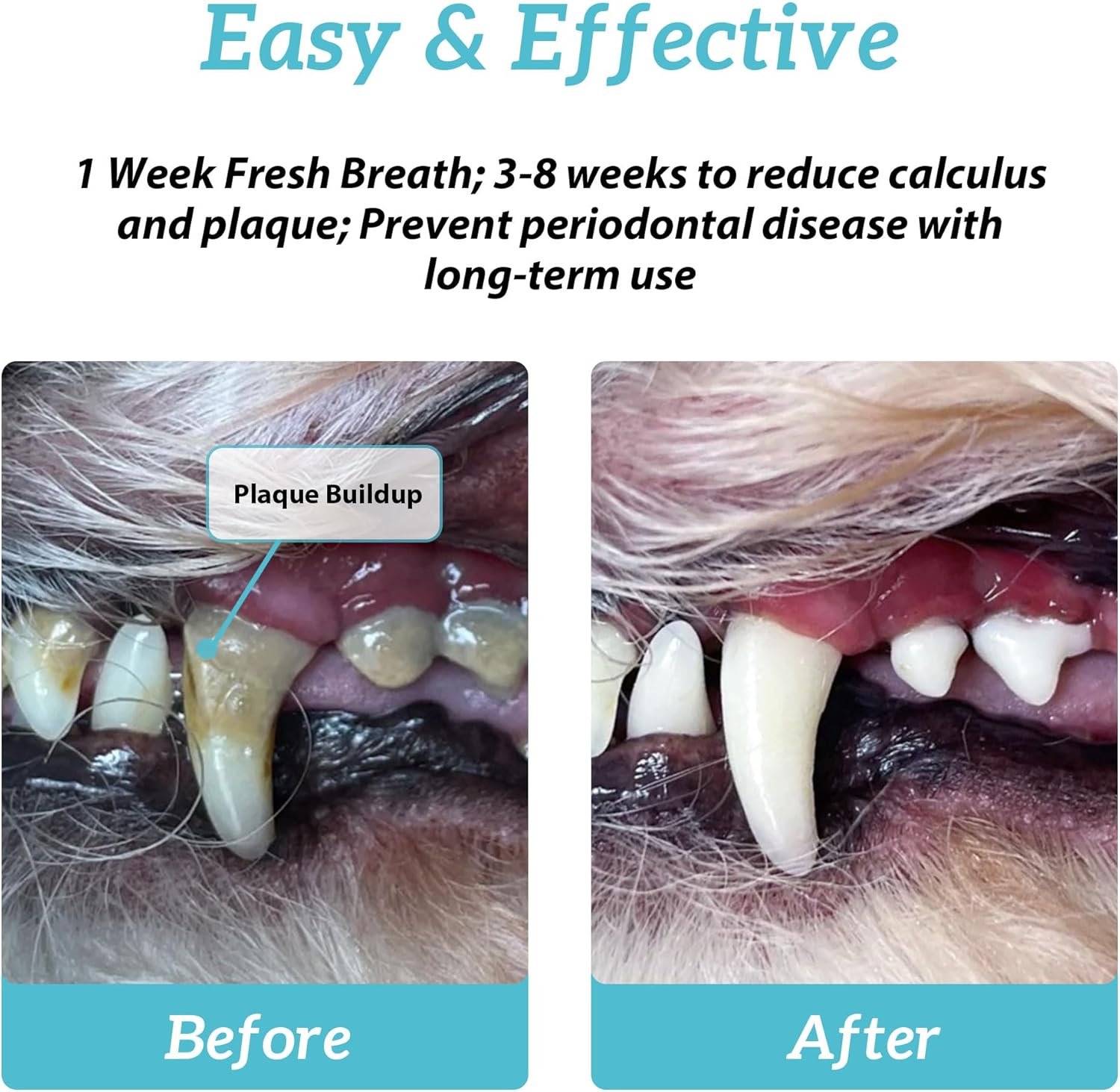 LONG-TERM USE IS BETTER: Please keep on giving your dog dental care, plaque and tartar will be significantly reduced after 3 to 8 weeks of continuous use. The longer you use it, the more effective the dental care will be.