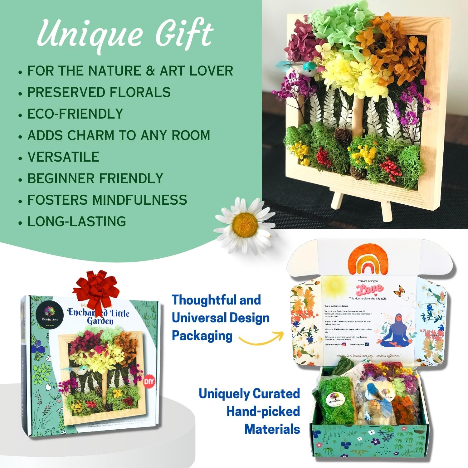MOSS KIT TO IGNITE YOUR CREATIVE MIND and artistic ideas with our DIY craft for girls ages 8-12 and beyond, arts and crafts for adult women, and crafting garden kit for teens who enjoy working with preserved flowers and elements from nature.