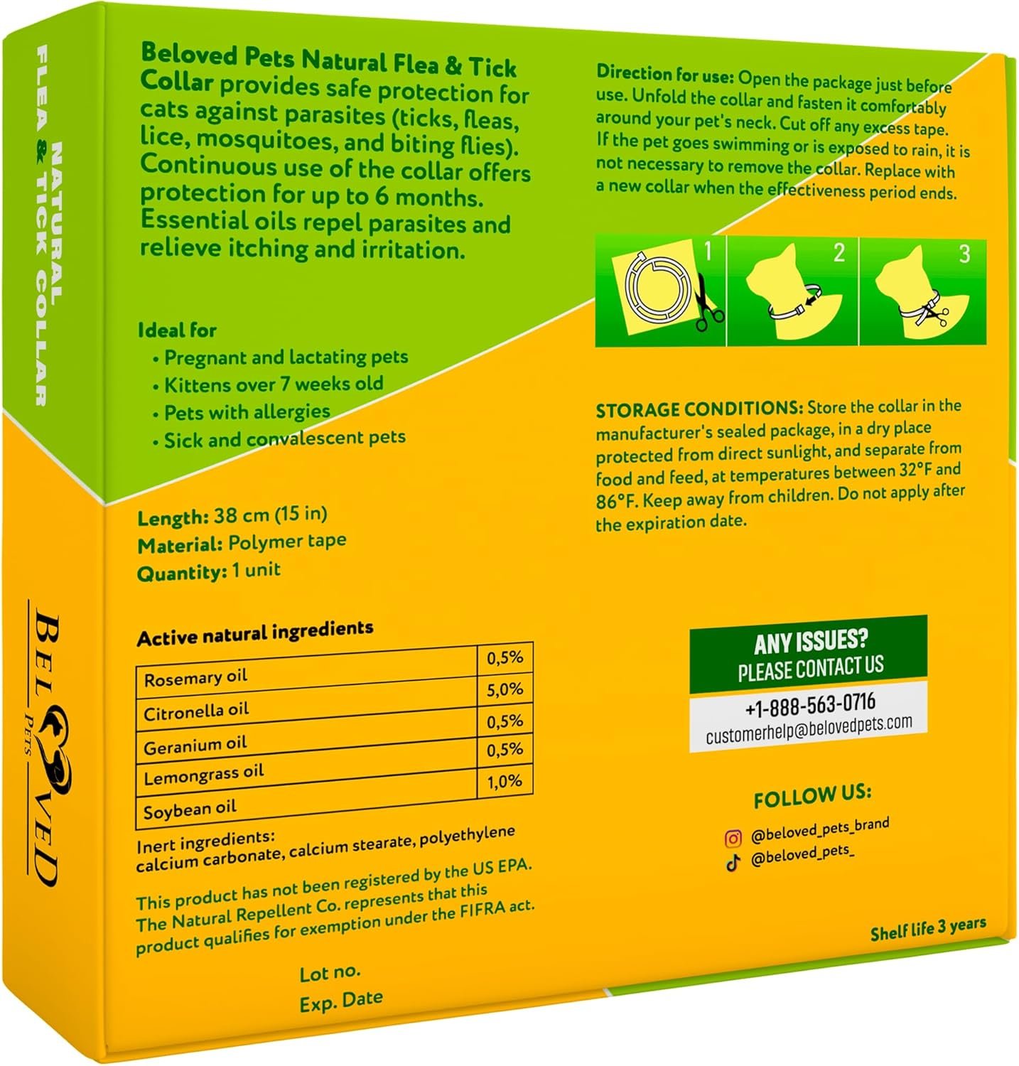 Natural Flea & Tick Collar for Cats – 12 Months Control of Best Prevention & Safe Treatment – Anti Fleas and Ticks Essential Oil Repellent (1 Pack)