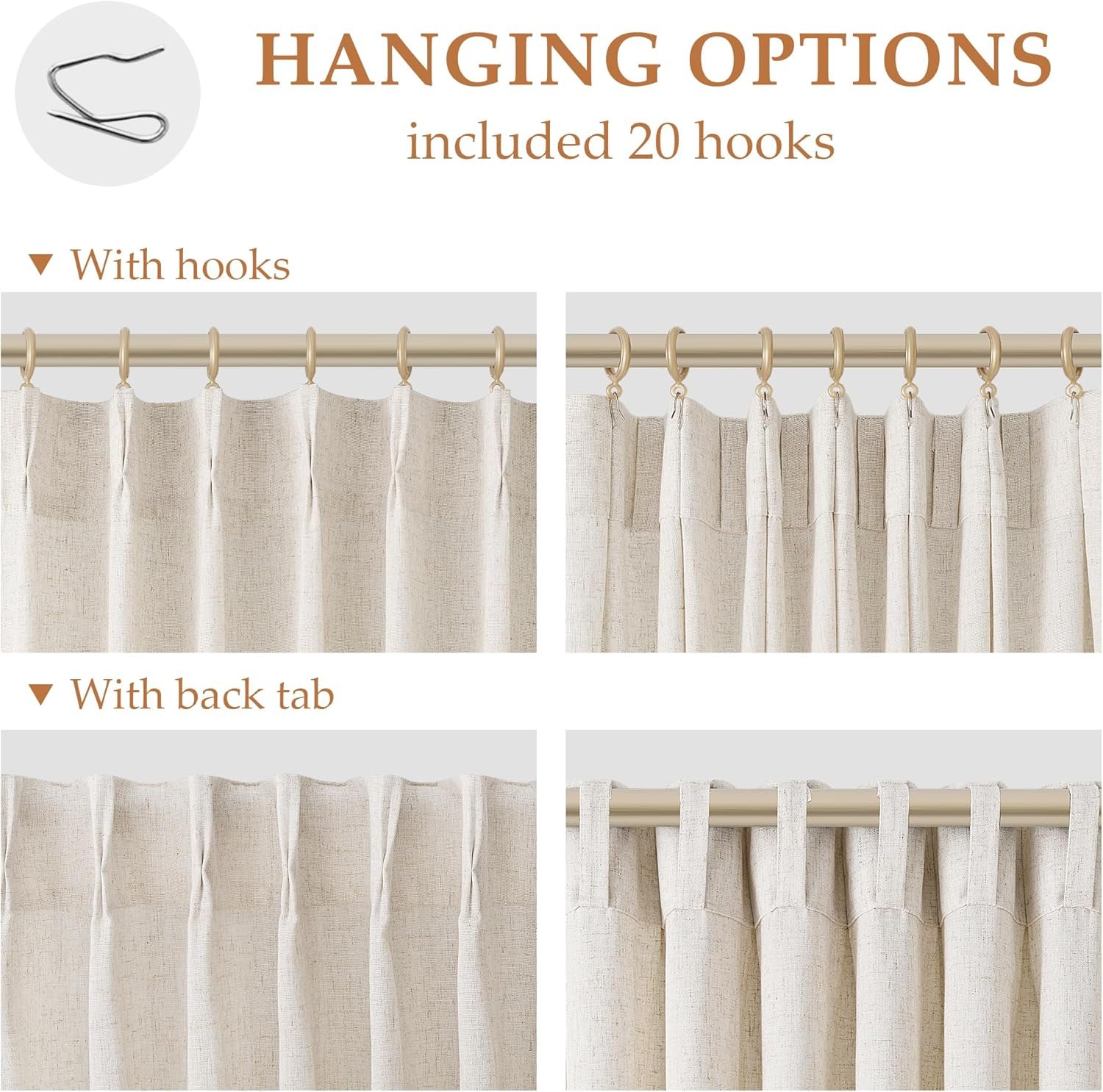 Natural Pinch Pleated Linen Curtains 84 Inch Length 2 Panels for Living Room Bedroom Cream Semi Sheer Window Curtain Boho Neutral Back Tab Pinch Pleat Drape with Hooks 84 Inches Long