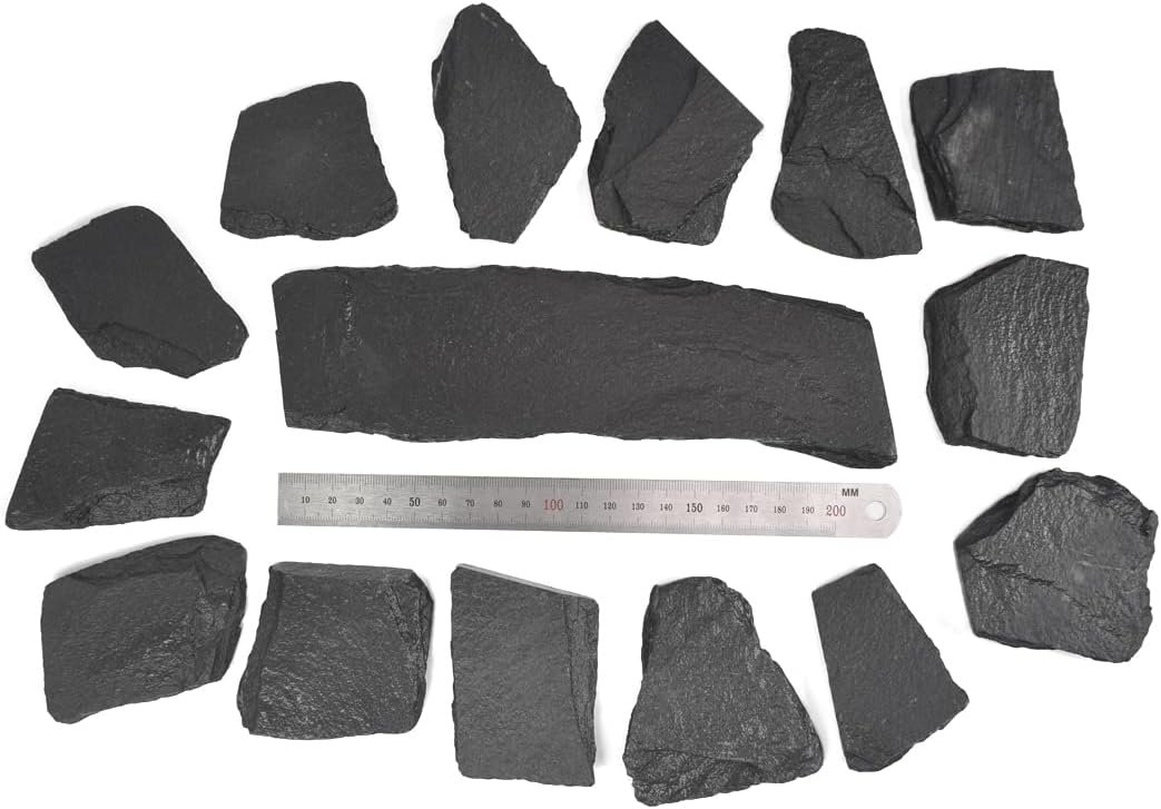 Natural Slate Stone Rocks, Mix of Stones 2 to 3 inches and 1 Piece About 8 inches – for Aquariums and Terrariums, Aquascaping (3 Pounds)
