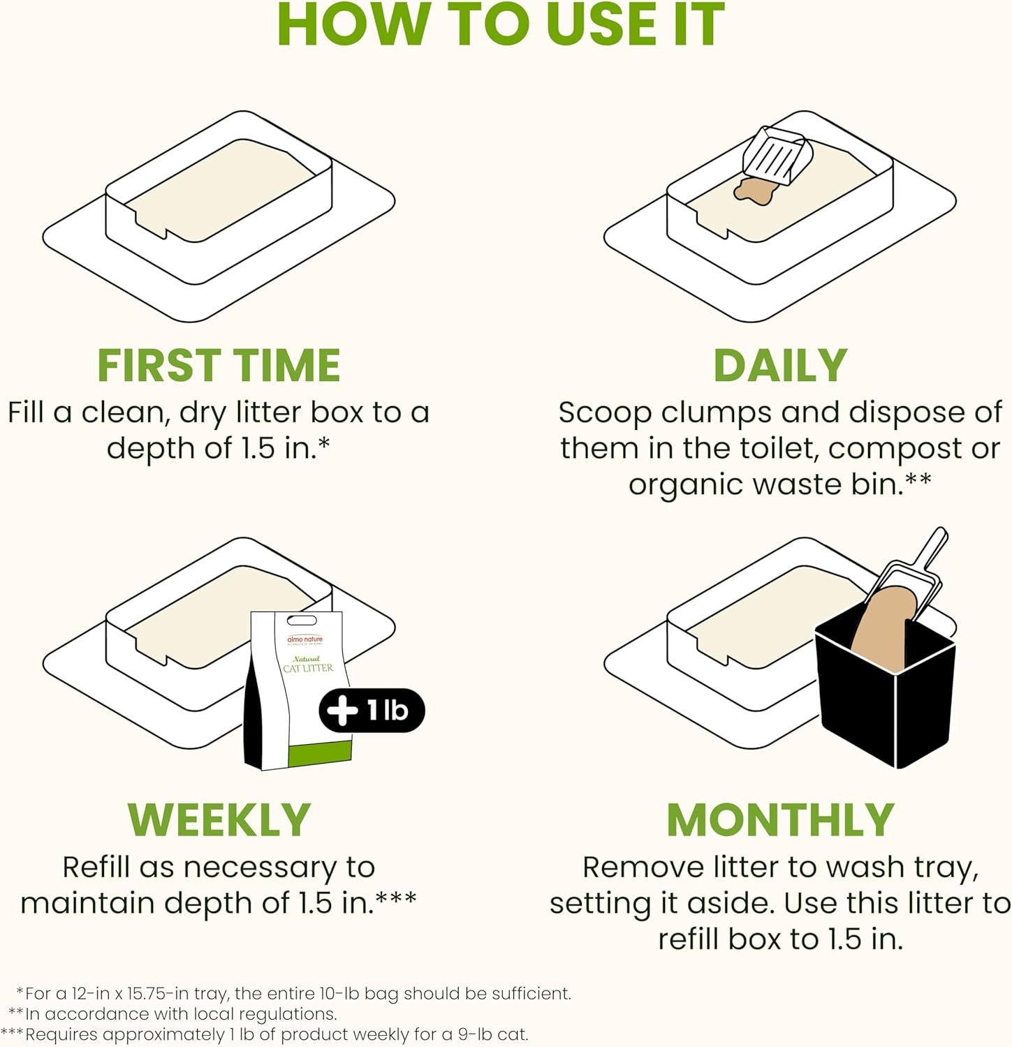 ECO-FRIENDLY & SUSTAINABLE: Almo Cat Litter is a natural, non-toxic, additive-free, and 100% biodegradable alternative to mineral and silica litters. Made from cassava root, it’s compostable, safe for your cat, family, and the planet.