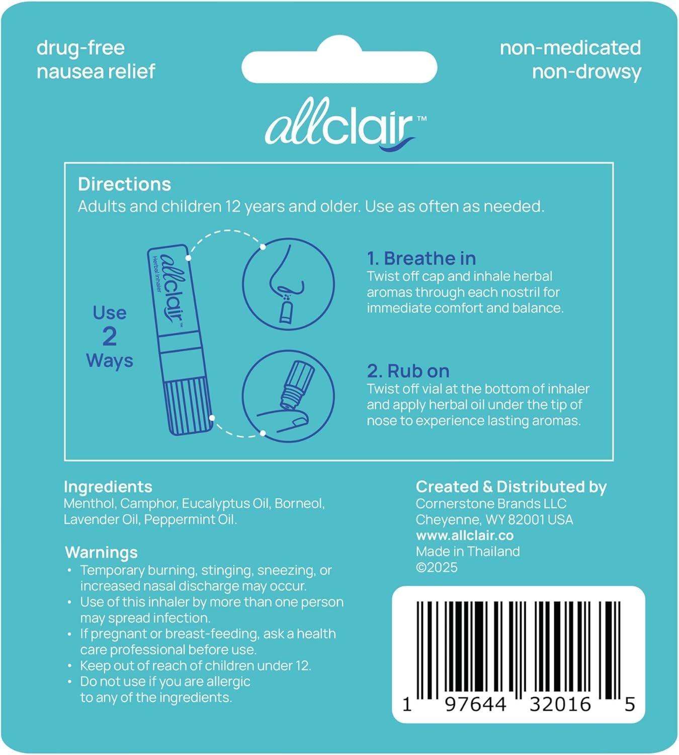 SAFE TO USE ANYTIME ⏱️ As a natural, non-medicated remedy, Allclair is ideal for mild onsets of nausea, motion sickness, dizziness, and morning sickness. Our herbal inhaler is crafted to be used as often as needed to provide you with relief from waves of discomfort.
