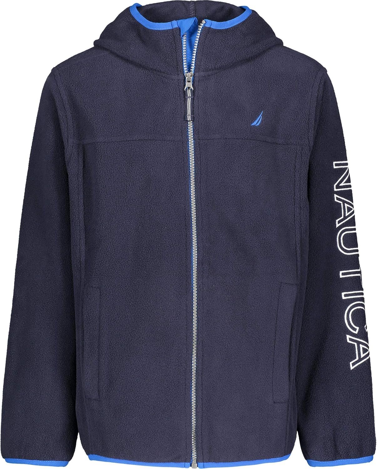 Nautica Boys’ Zip Up Hoodie Sweatshirt, Signature Logo Design, Kangaroo Pockets, Made with Lightweight Fleece