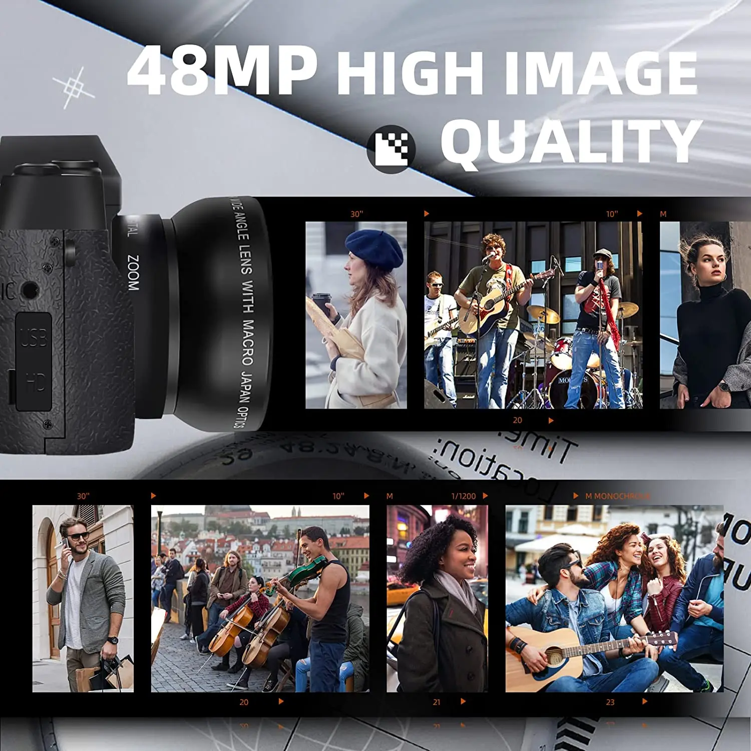 ã€48MP & 4.0K HD Vlogging Camera】The vlogging camera supports 4.0K FHD/30pfs video resolution and takes pictures with 48MP picture resolution. It can achieve excellent photographing and recording effects. Recording extremely high quality video and capture wonderful moment, get more natural and realistic image quality.