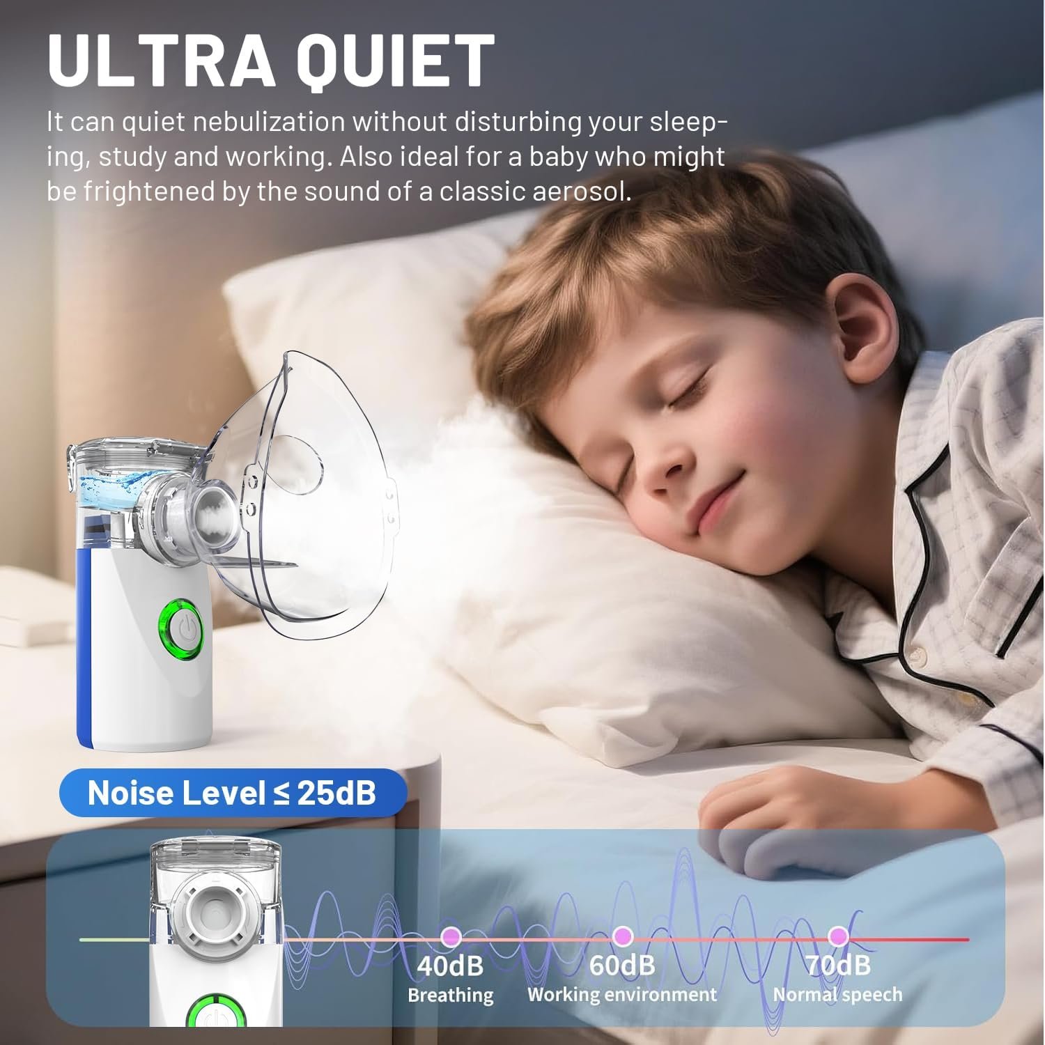 Nebulizer for Adults & Kids, Portable Nebulizer with 2 Masks & Mouthpiece, Quiet Working, 2 Adjustable Mode, Rechargeable Inhaler Machine for Travel & Home Use, Hailie Sensor