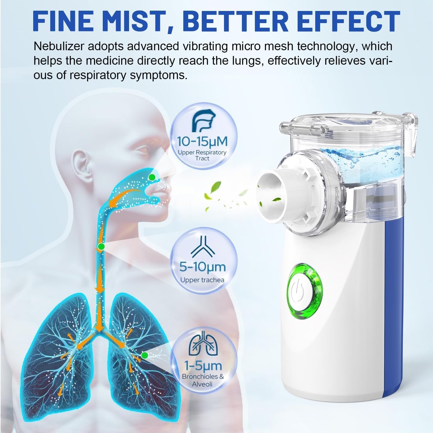 Easy to Use & Auto Shut Off: Our mesh nebulizer for kids is set to automatically shut off. There is a sensor inside that senses when there’s no fluid in the chamber, then auto shut off! (The portable nebulizer rechargeable also turns off automatically after running for more than 20 minutes-to give you a more comfortable treatment time). One-button operation that you only need to press one button lightly, the atomizer will start and run safely.