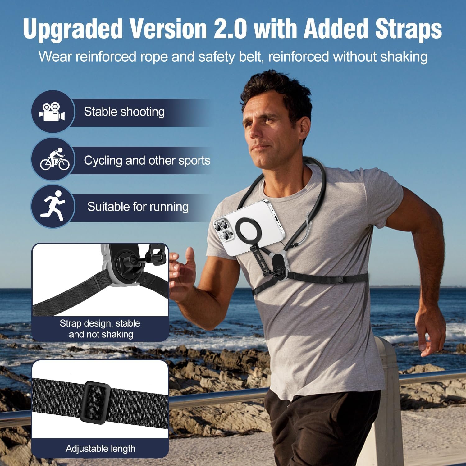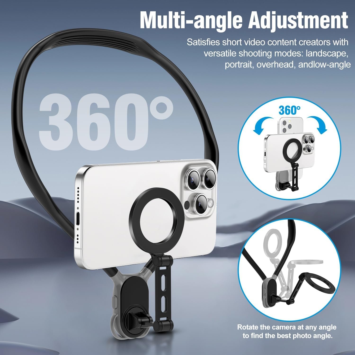 Neck Phone Holder for Recording, Neck Tripod for iPhone, Magnetic Neck Chest Mount, Hands-Free POV Cell Phone Necklace Holder for iPhone 15 14 13 12 Series and All Android Phones