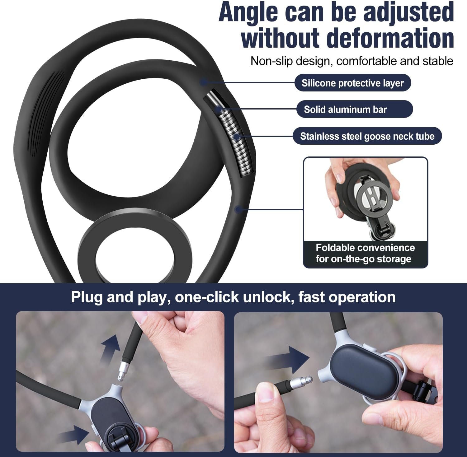 【Installation and Detachment Design】 Our neck phone holder for recording uses a one-click unlock and installation technology, coupled with a magnetic quick-release design for phones, making it easy to install and remove your phone, eliminating cumbersome operation steps and truly achieving plug-and-play convenience.