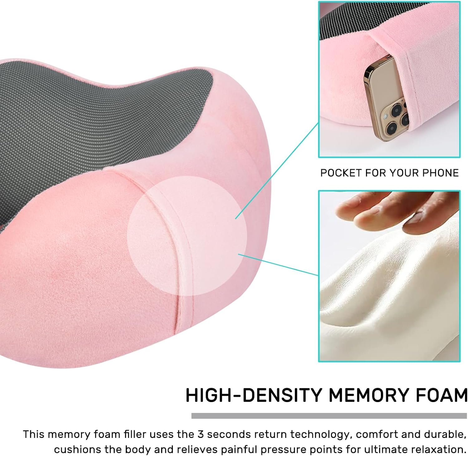 Neck Pillow Airplane-2 Pack Memory Foam Travel Pillow, Soft & Support Travel Neck Pillow for Travelling, Sleeping Rest, Car, Train and Home Use (Grey&Pink)