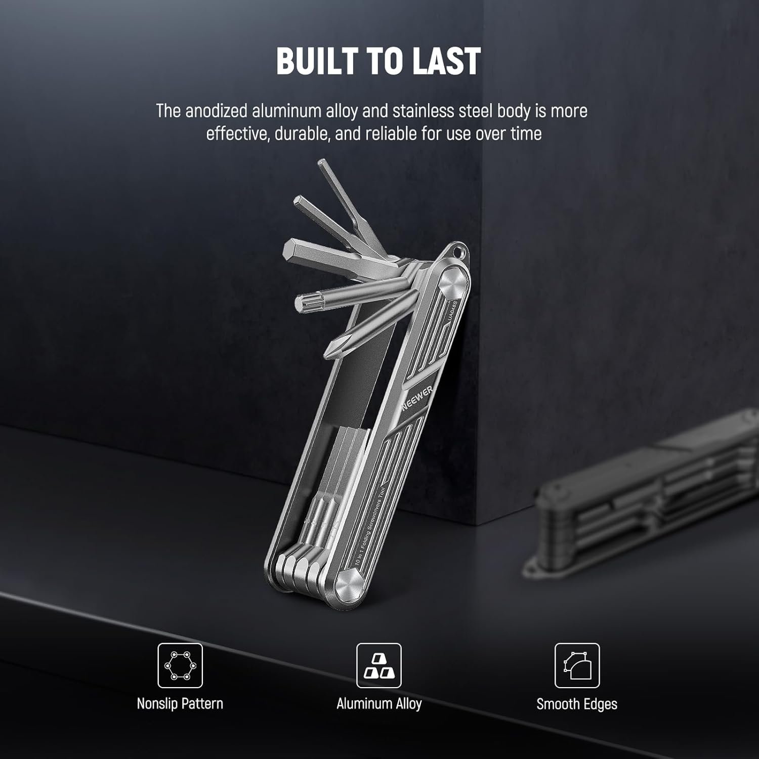 NEEWER 10 in 1 Multifunctional Foldable Screwdriver Tool Set: 4 Screwdrivers, 6 Hex Keys, Pocket Tool, Compatible with SmallRig Camera Cage Rig Tripod QR Plate, UA048S Silver