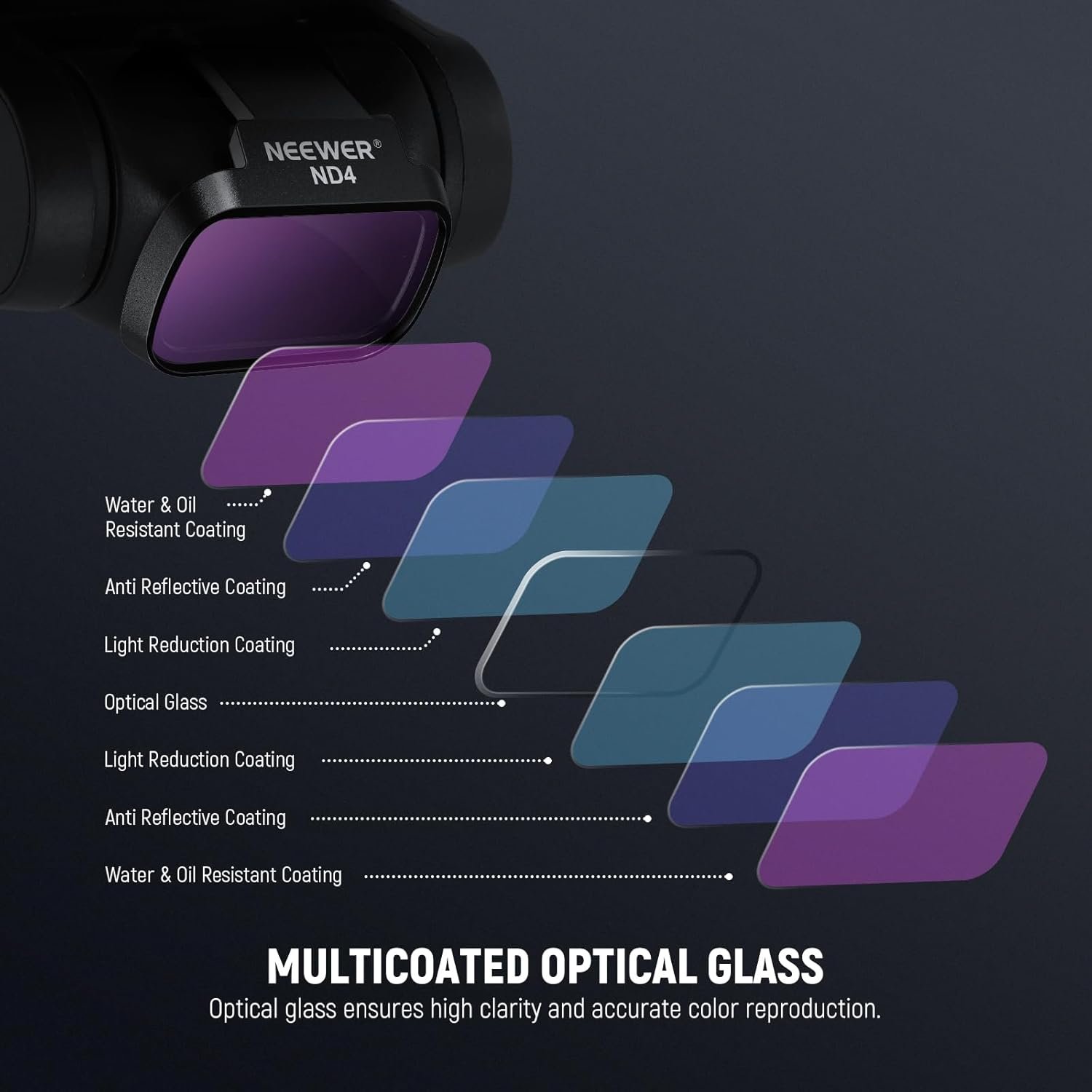 【Multi Coated HD Glass & Gimbal Safe】 Crafted from premium high definition optical glass with multi layer coatings on both sides, these drone lens filters are waterproofed, scratch resistant, and oil & dust proof, ensuring long lasting optical quality and remarkable image sharpness in challenging environments. The ultra slim, lightweight frame ensures a secure, seamless fit without adding extra burden, maintaining smooth gimbal performance without affecting balance or calibration