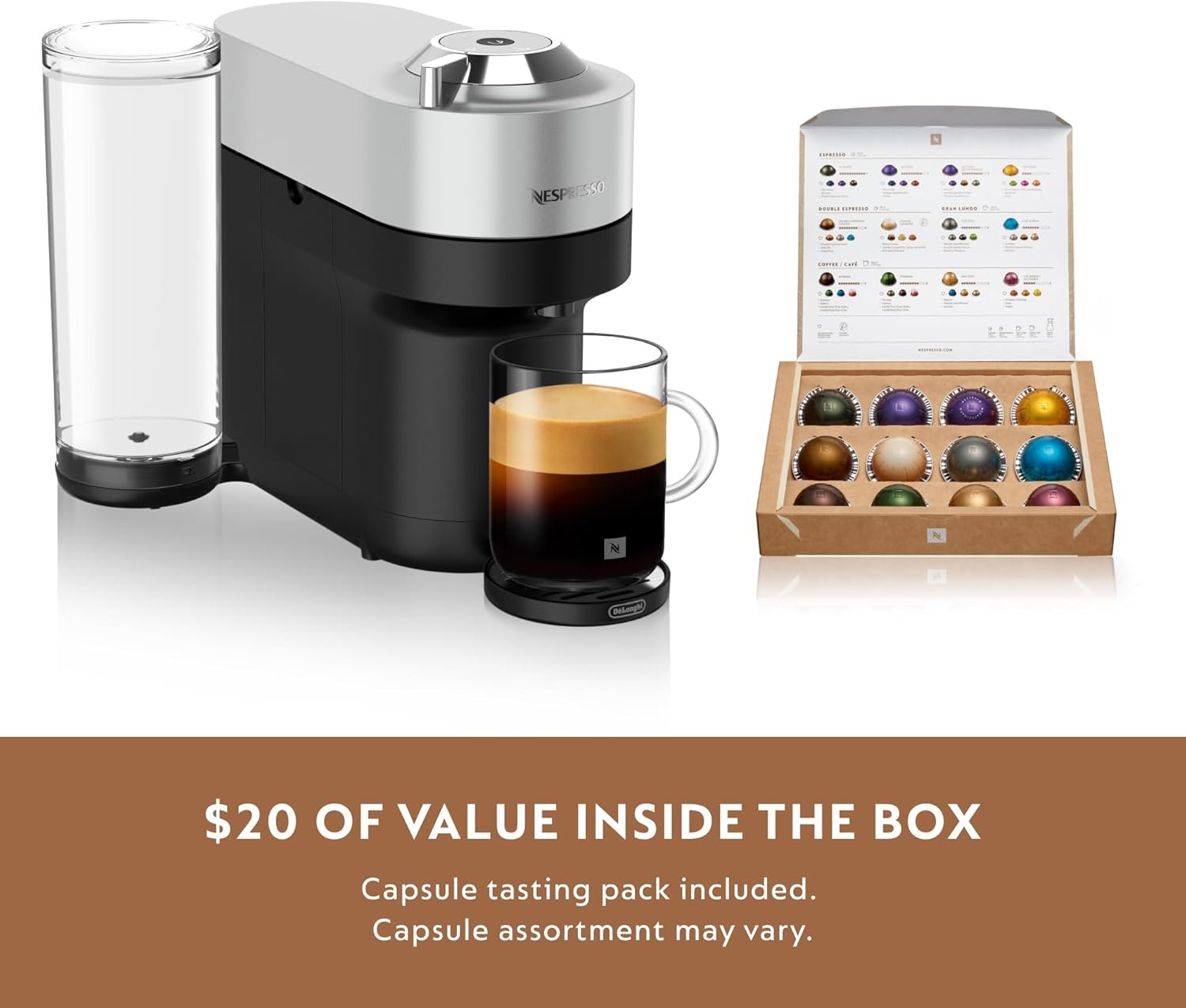 PREMIUM COFFEE BLENDS: Discover over 40 permanent and limited-edition Vertuo coffees, ranging from intense to mild. The machine comes with a complimentary tasting pack.. Capsules are exclusively compatible with Nespresso Vertuo machines.