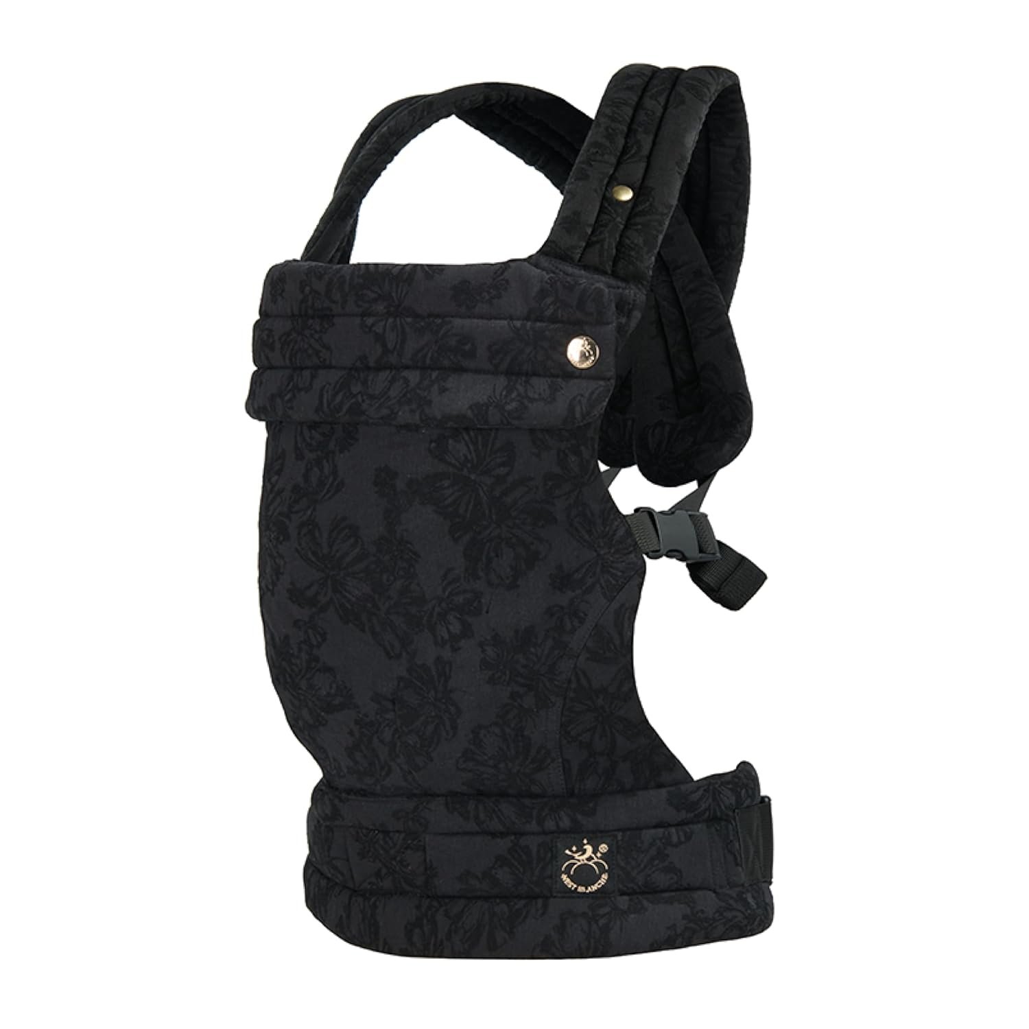 NEST BLANCHE Baby Carrier – Soft Cotton Linen Blend with Magnolia Jacquard Design, Adjustable and Ergonomic for Newborns and Toddlers (Ebony)