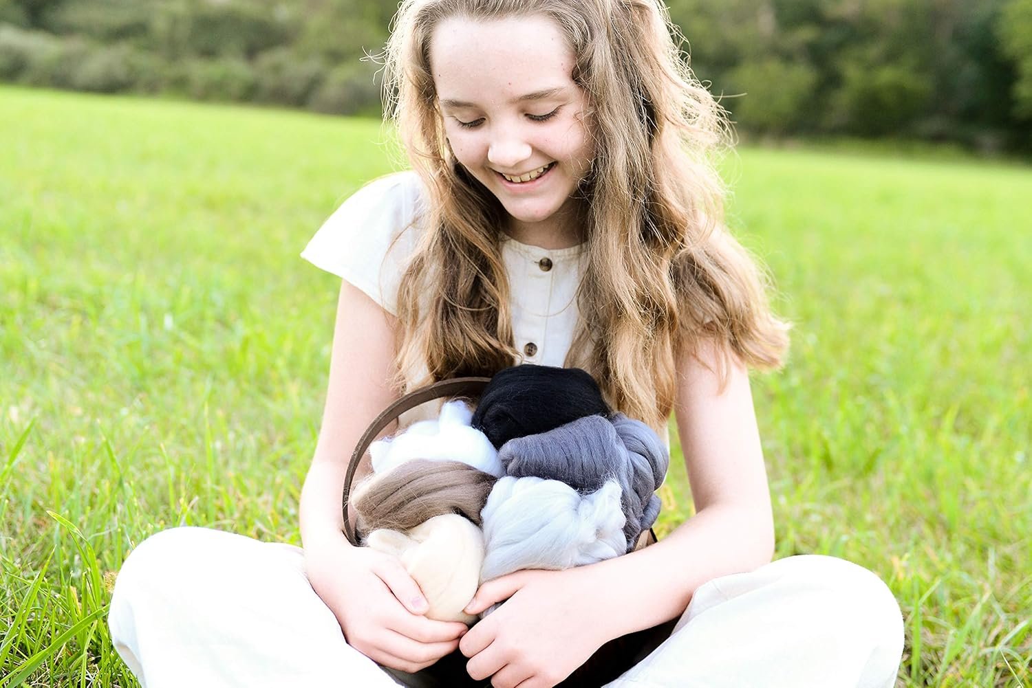 Neutral Palette Extra Fine Merino Wool Roving – 6 yds, 6 Pack with Storage for Needle Felting, Spinning Yarn, Fiber Arts & Crafts