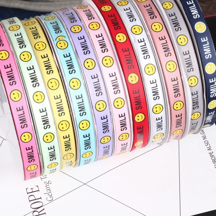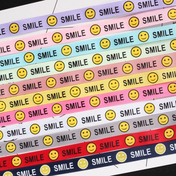 New 1.6CM Print ” SMILE” English letter Pattern Printed grosgrain Ribbon DIY bowknot Apparel Sewing Packing Craft (11 colors)