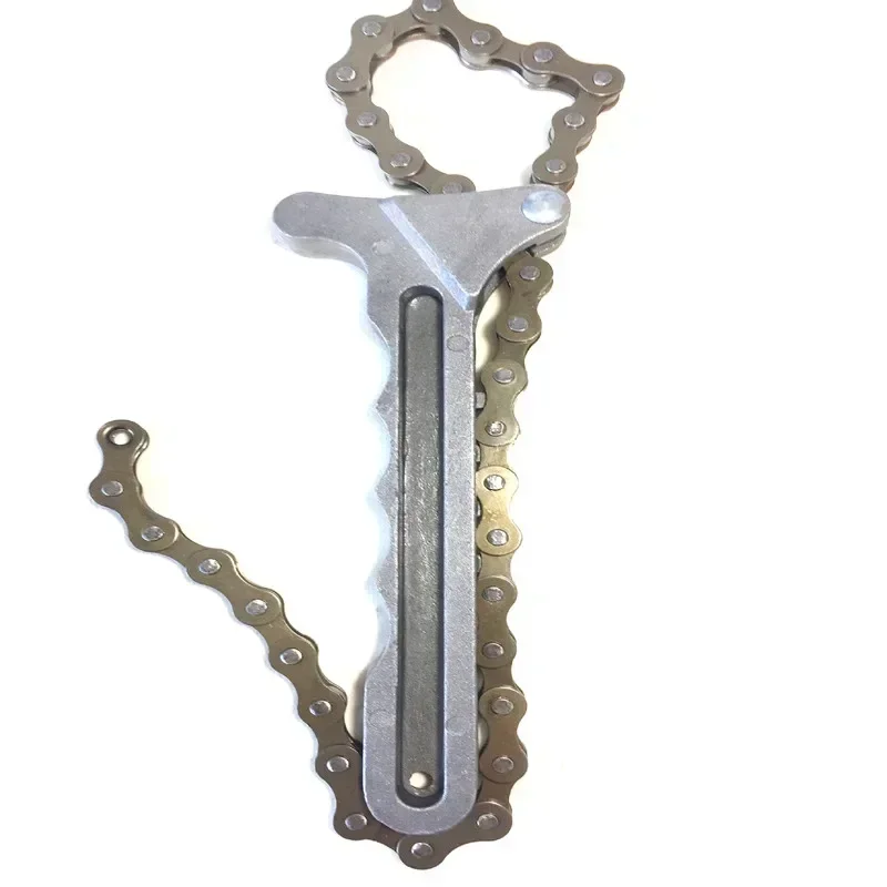 2. How to use: The chain simply sits around the filter, turning the chain will tighten to the diameter of the filter