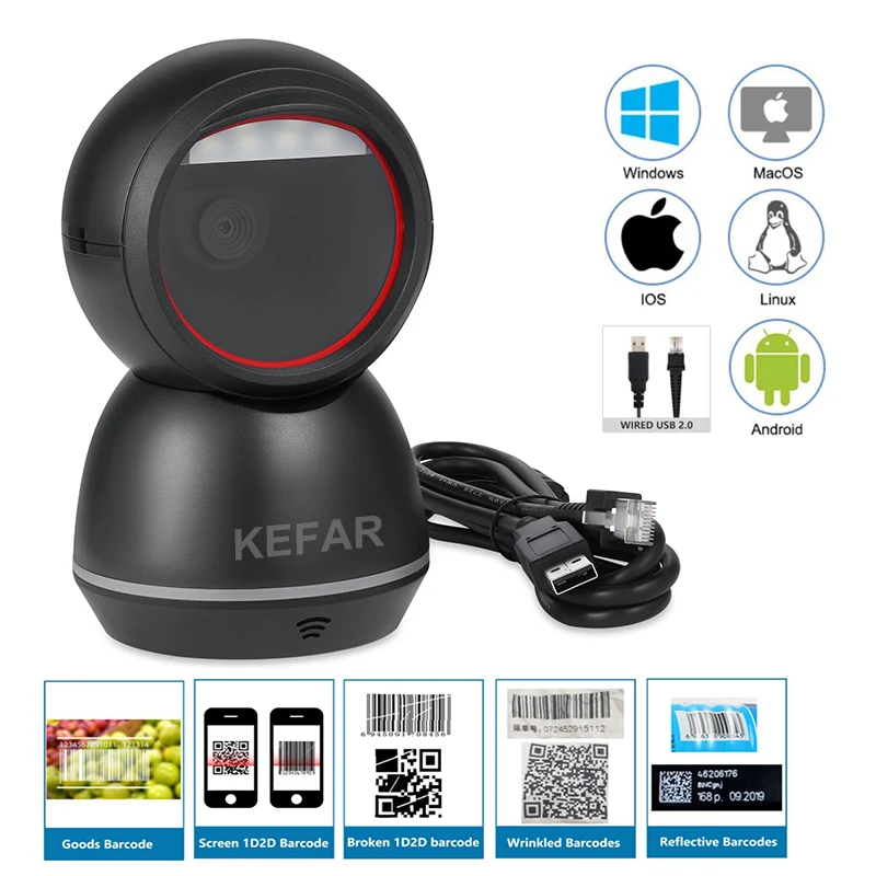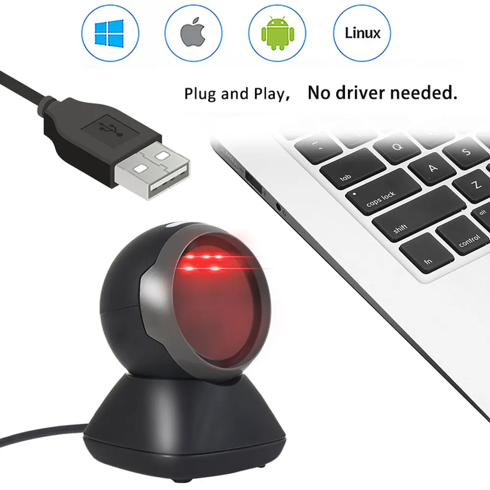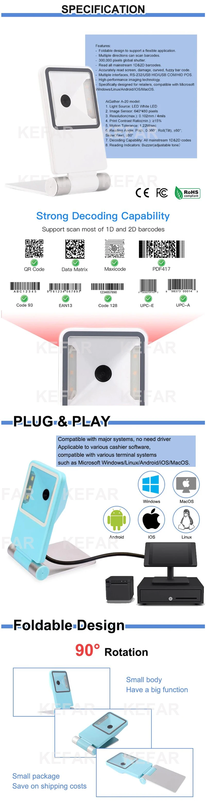 New Arrial Foldable Omnidirectional Desktop 2D Barcode Scanner Automatic Wired USB Platform Bar Code Reader for Supermarket