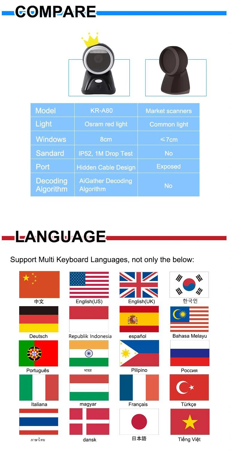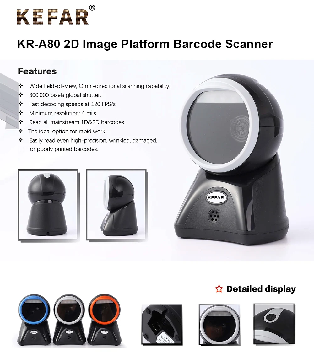 Model 3: KR-A80 2D Image Hands-Free Barcode Scanner Flatbed Desktop Omnidirectional Bar code Reader QR pdf417 for Retail