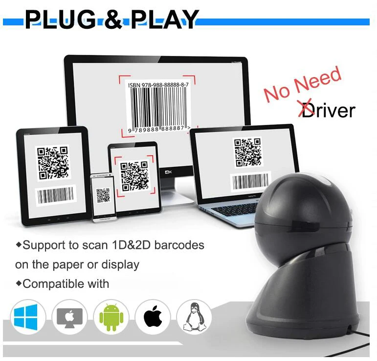 Model 4: KR-920 2D Barcode Scanner Image Platform 1D 2D QR code reader Desktop USB Omnidirectional High appearance high performance fast reader