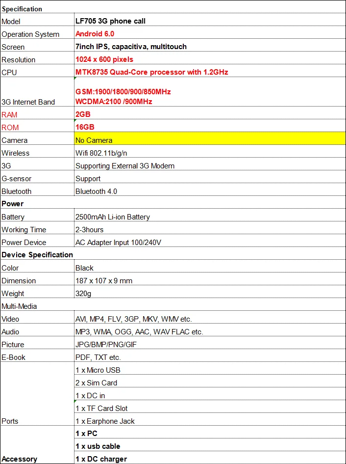 7 reviews for New Arrival 7 INCH 2GB RAM 16GB ROM MTK8735 Quad-Core LF705 3G Phone Call Android 6.0 Tablet PC WIFI SIM Card 1024 x 600 IPS