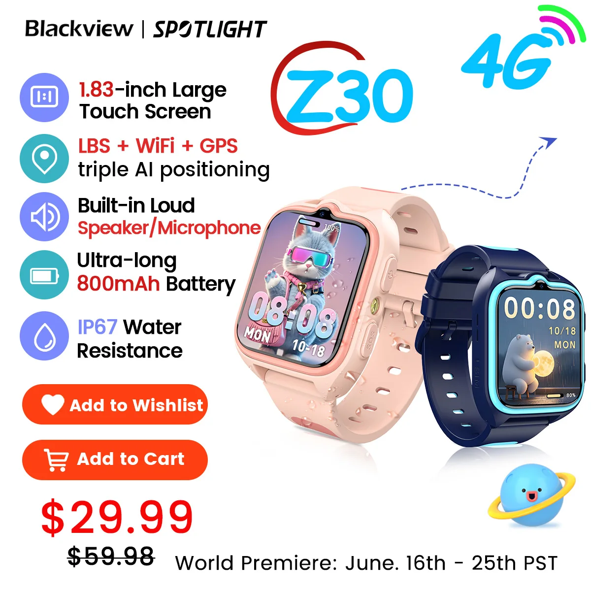 14 reviews for New Blackview Z30 Kids Smart Watch 4G Call Phone Watch, Waterproof Children Monitor Tracker, SOS Child Sports Digital Watches