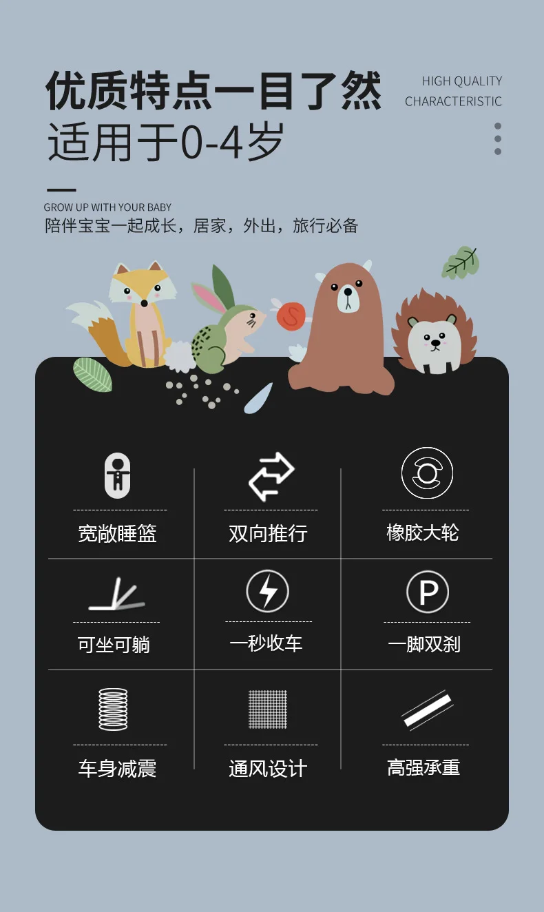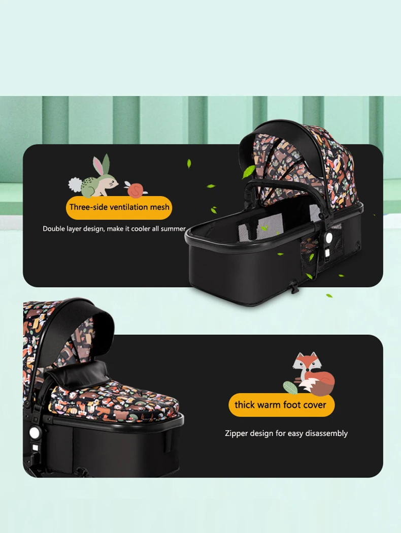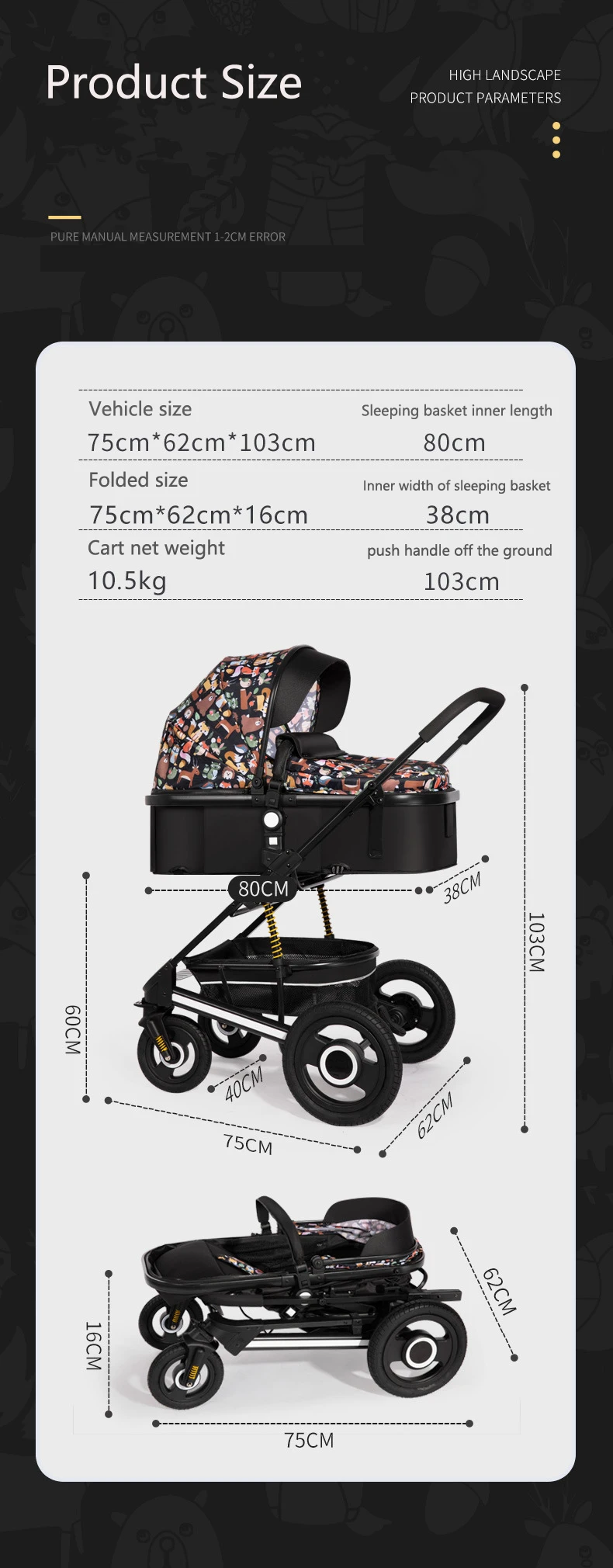 New Cartoon Portable Folding Stroller baby carriage pram High Landscape Stroller Reclining Baby Carriage Baby Bassinet Puchair