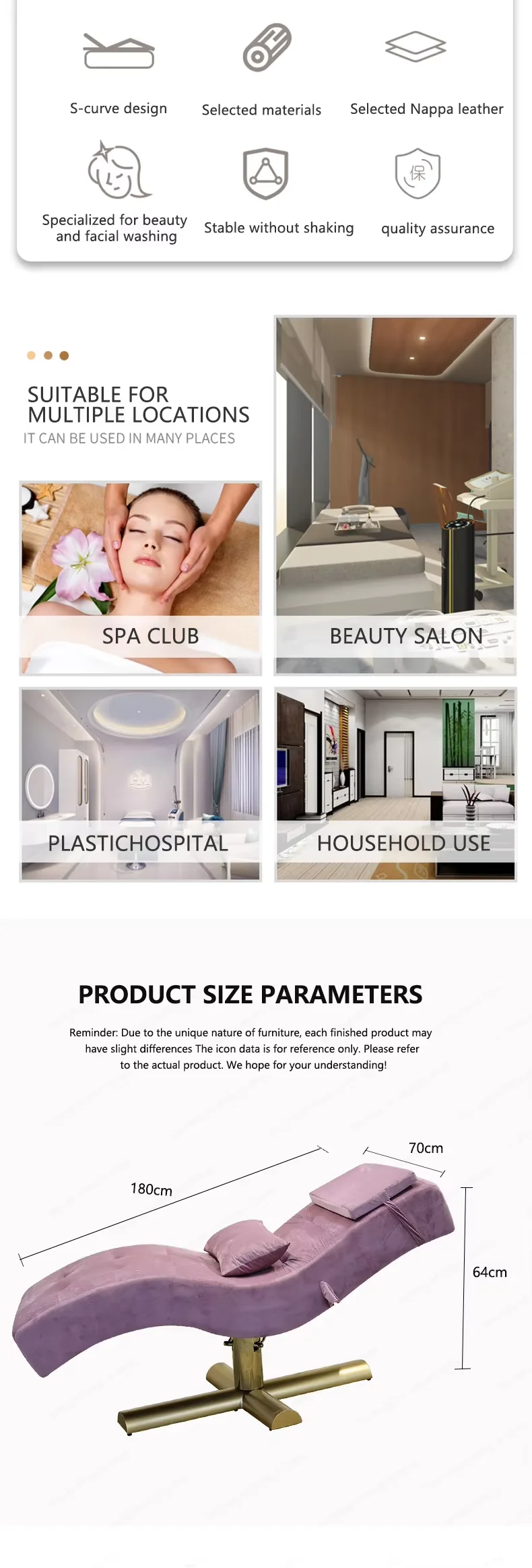 New design adjustable Lifting Velvet Synthetic Leather pink eyelash bed electric beauty salon bed facial chair