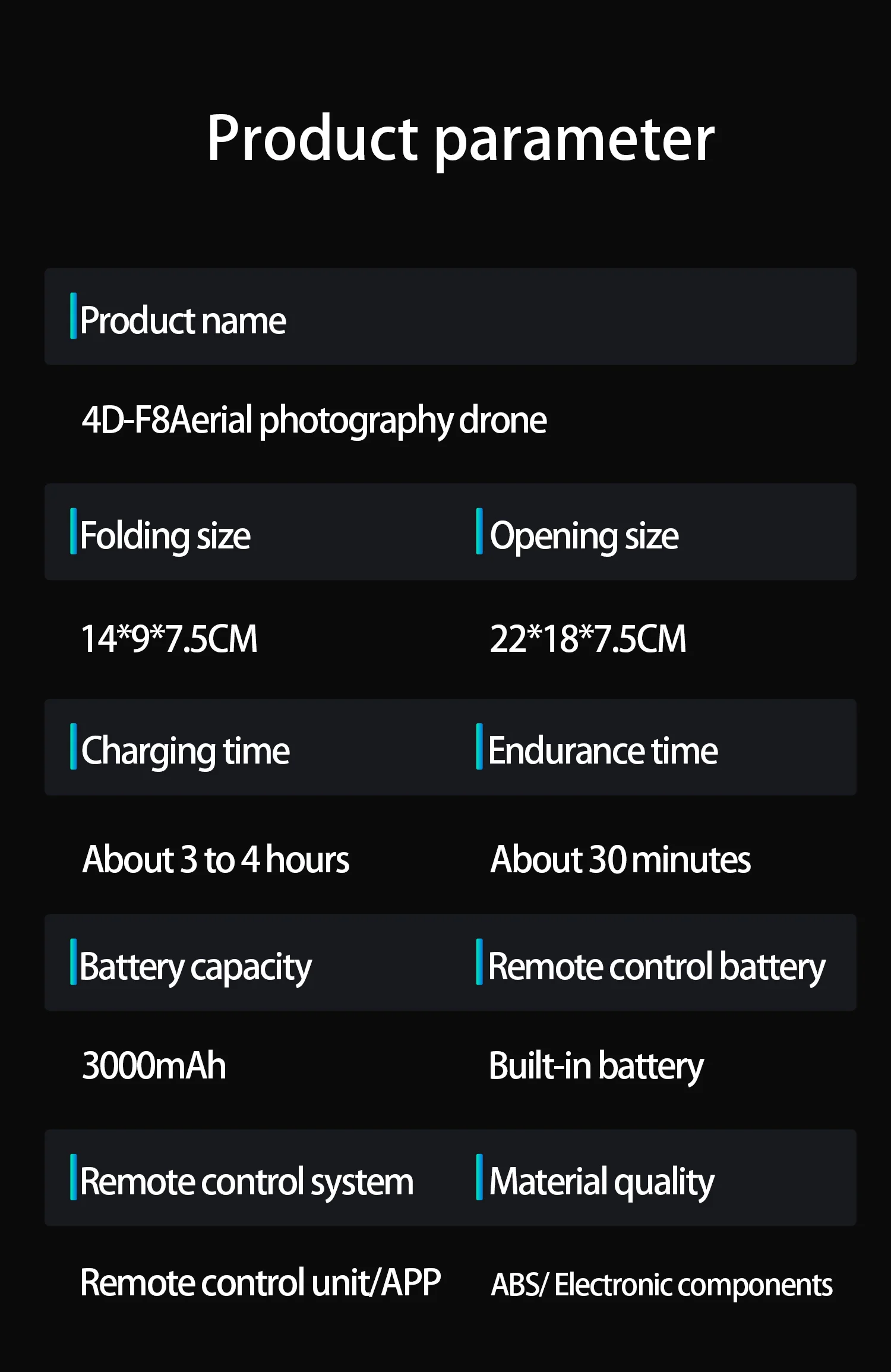 ​2.Powerful motor – The most potent feature of the F8 RC quadcopter drone is its powerful brushless motor. It operates with minimal noise and guarantees longevity without needing to be replaced. With this F8 drone, chances of a breakdown are next to none.