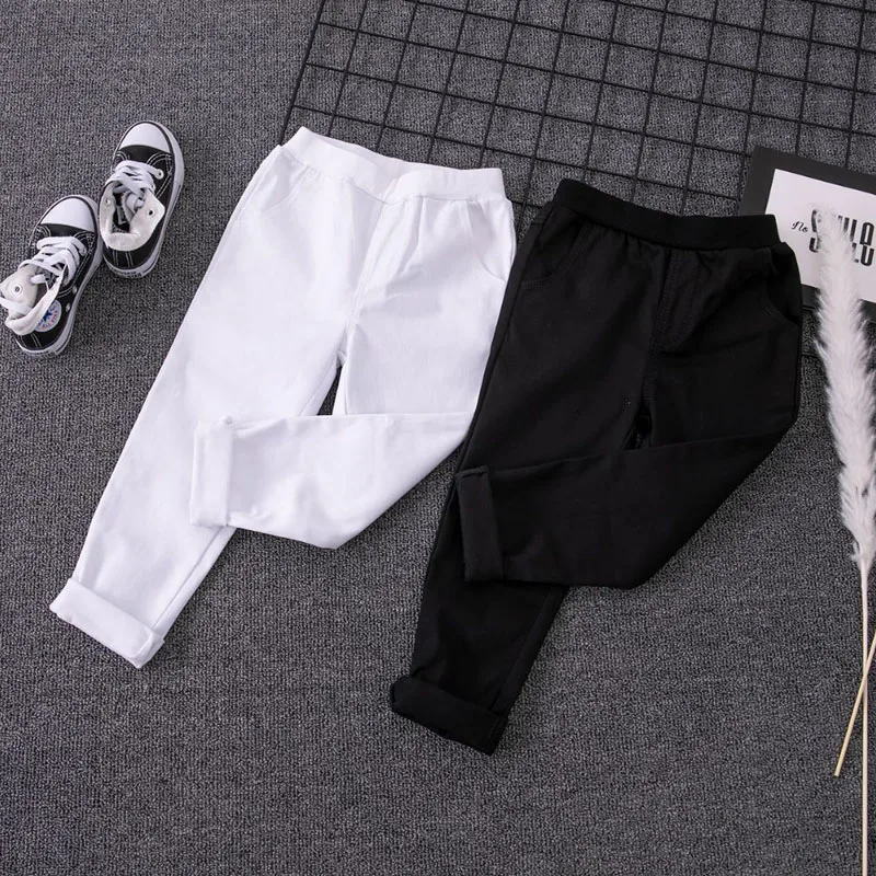 New Fashion White Pants for Kids Boys Cotton Teenage Black Long Trousers School Boys Junior Sweatpants Children Clothes 4 8 12Y