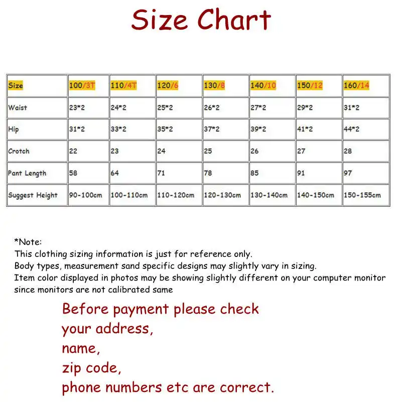 *Note: This clothing sizing information is just for reference only. Body types, measurement sand specific designs may slightly vary in sizing. Item color displayed in photos may be showing slightly different on your computer monitor since monitors are not calibrated same