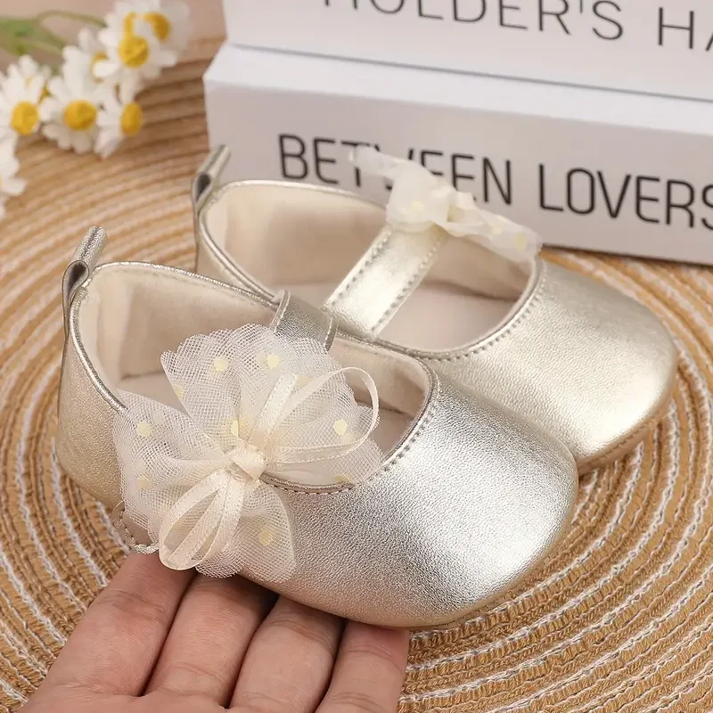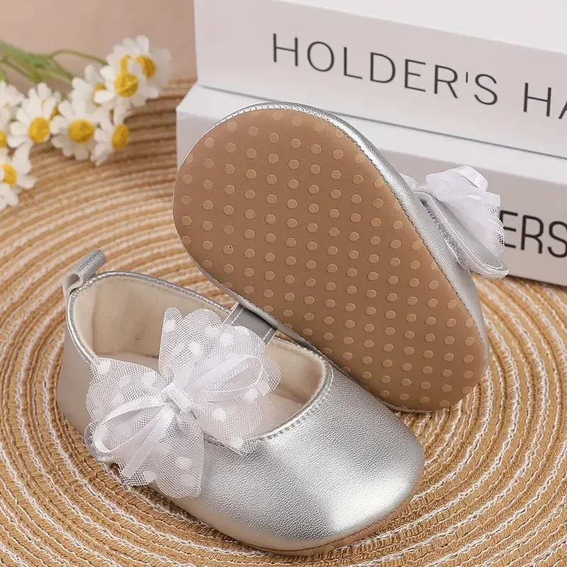 New Girl’s Shoes With PU Butterfly Knot Magic Tape Design Flat Casual Fashion Mary Jane Princess Shoes Suitable For Babies