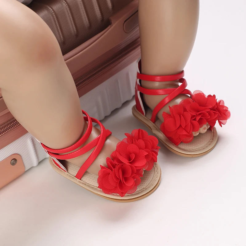 New Infant Baby Shoes Baby Boy Girl Shoes Toddler Flats Summer Sandal Flower Soft Rubber Sole Anti-Slip Crib Shoes First Walker