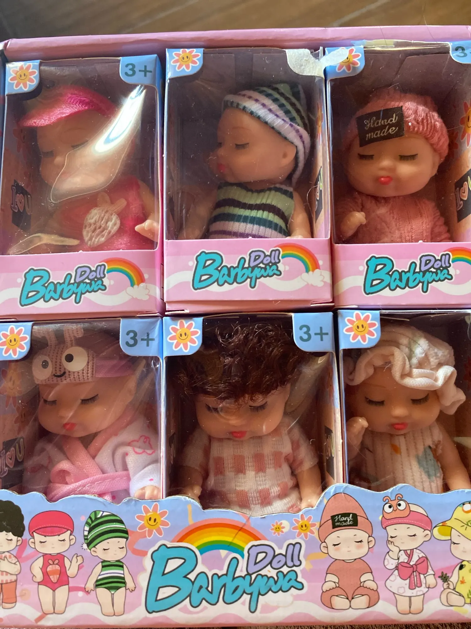 These are excellent, cute and well made, all have different expressions and this is the only seller that had one style with open eyes. They all come in separate boxes, safely packed in a display carton like you would see in a shop, so well worth the price. Very happy, can recommend. Only took one week to come overseas.