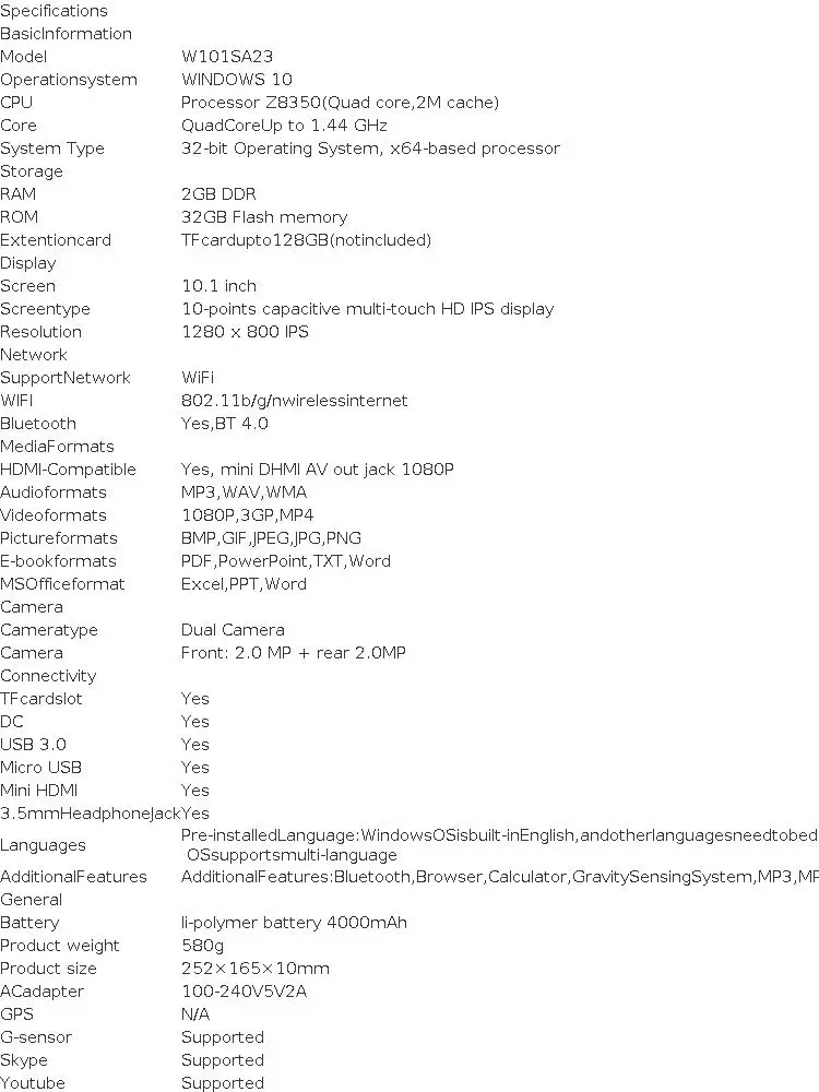 3 reviews for New Sales 10.1 INCH 2GBDDR+32GB W101 Windows 10 Tablet PC Z8350 CPU Dual Camera USB 3.0 Battery 6000mAh Docking Keyboard