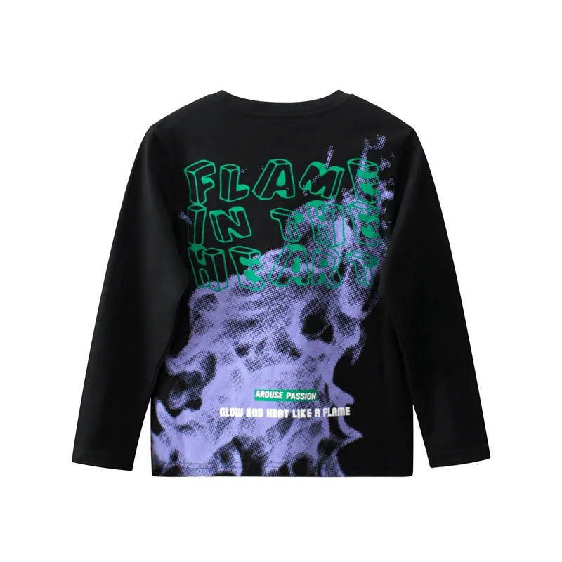 New Spring Autumn T Shirts for Big Boys Cotton Korean Children’s Long Sleeve Print Bottoming Shirts Teenage Black Tops 8 16 Y