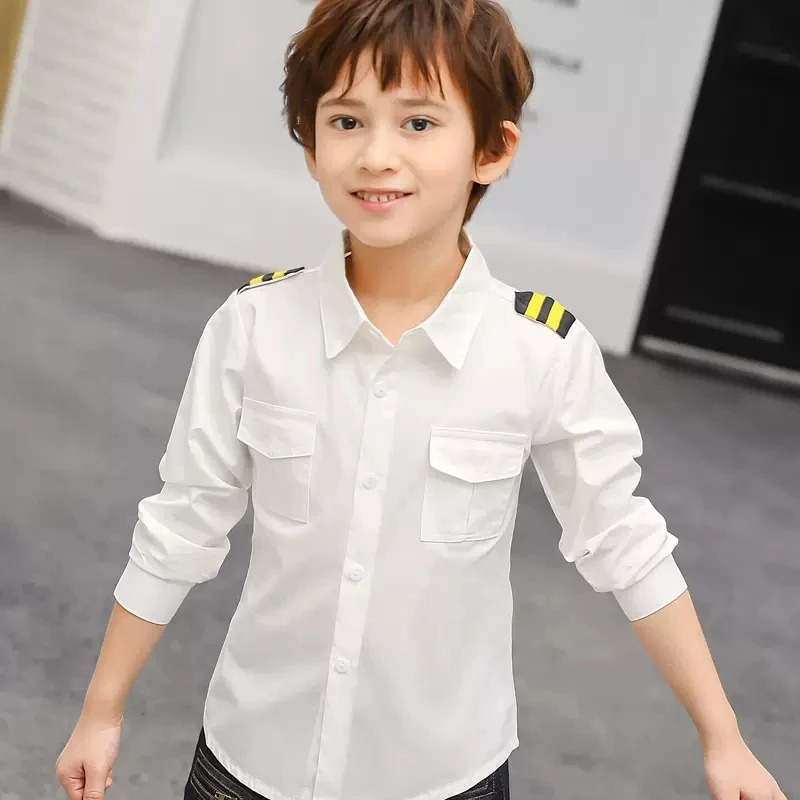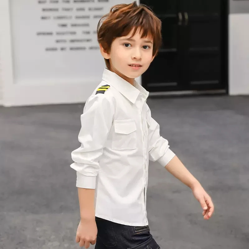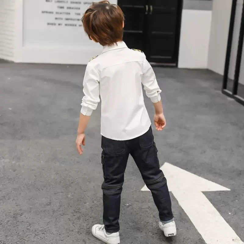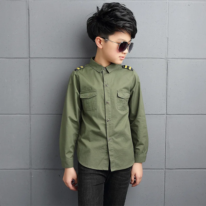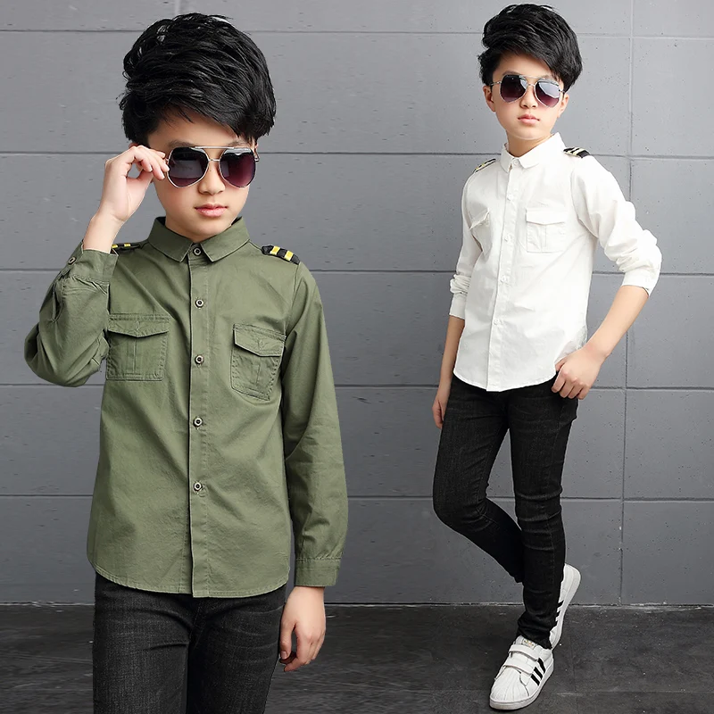 New Spring Fall Boy Shirts for Children Cotton Army Green Big Kids White Shirt Long Sleeve Teenage Uniform Kids Clothes 8 To 12T