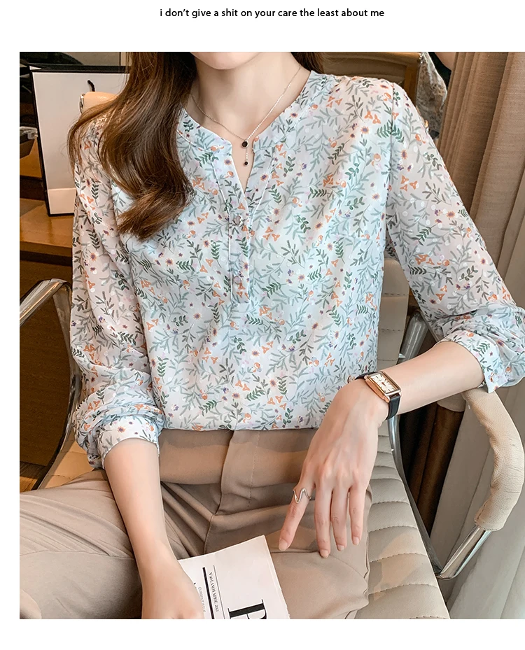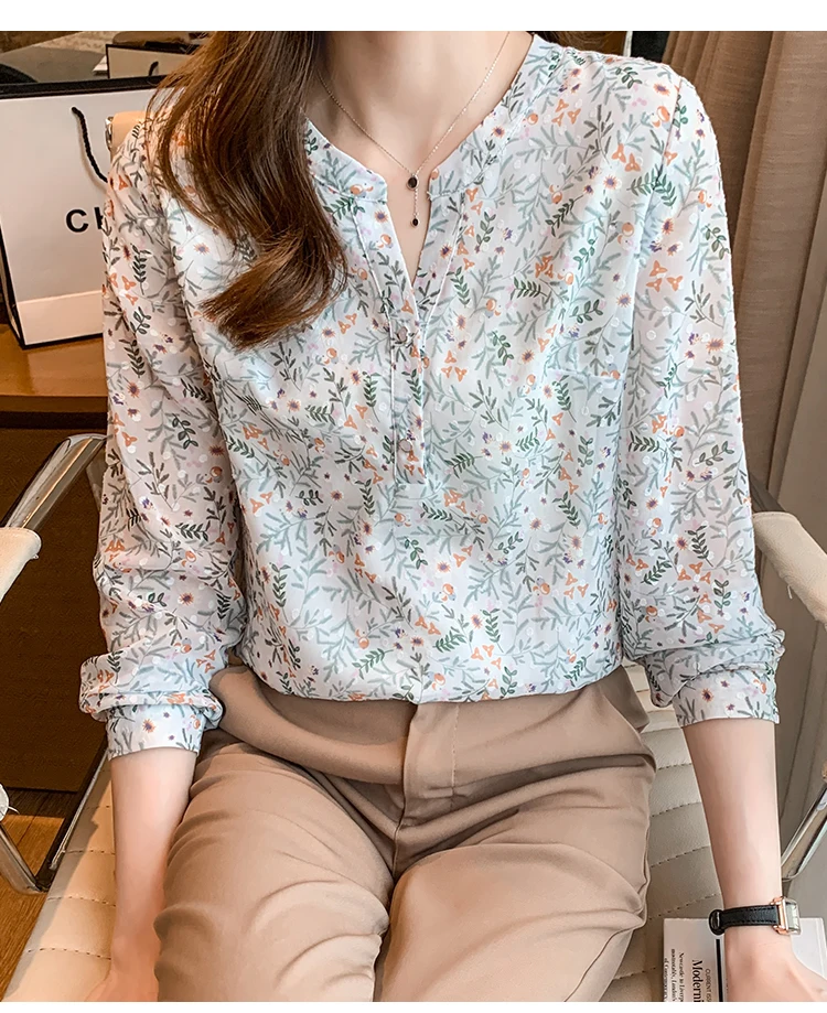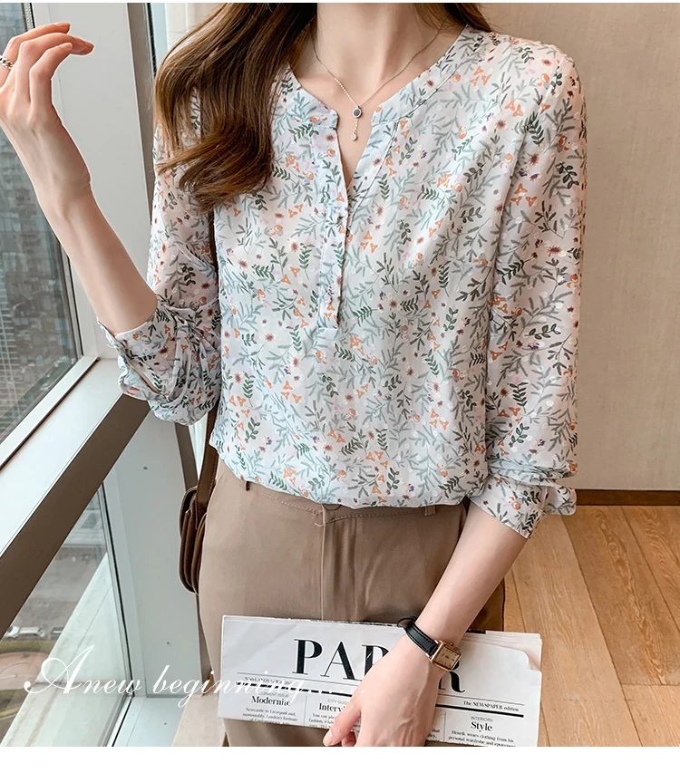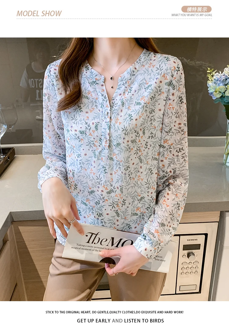 New Spring floral chiffon shirts for ladies Fashion Women’s Blouses bottoming shirts Tops Blusas Mujer