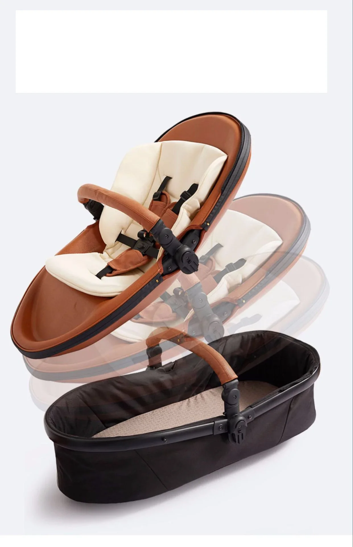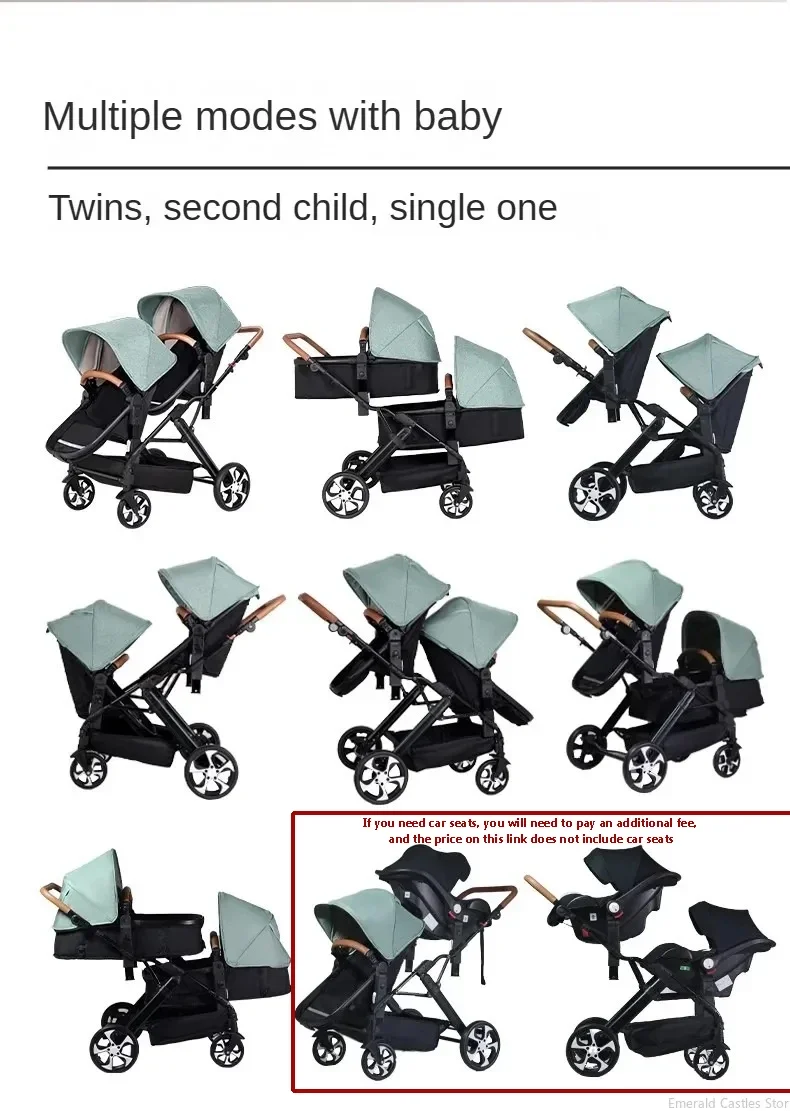 New twin strollers High landscape High quality foldable four-wheel stroller Removable double eggshell Sleeping basket stroller