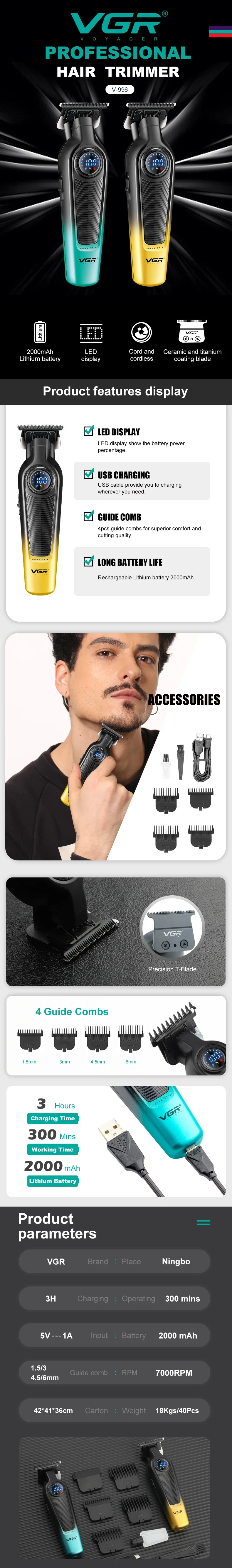 NEW VGR 996 Gradient Metal Body Hair Trimmer Men’s Electric Hair Clipper LED Intelligent Digital Display Home Carving Pusher