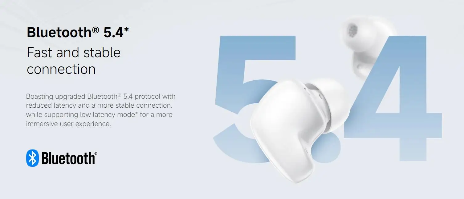 Boasting upgraded Bluetooth® 5.4 protocol with reduced latency and a more stable connection, while supporting low latency mode* for a more immersive user experience.